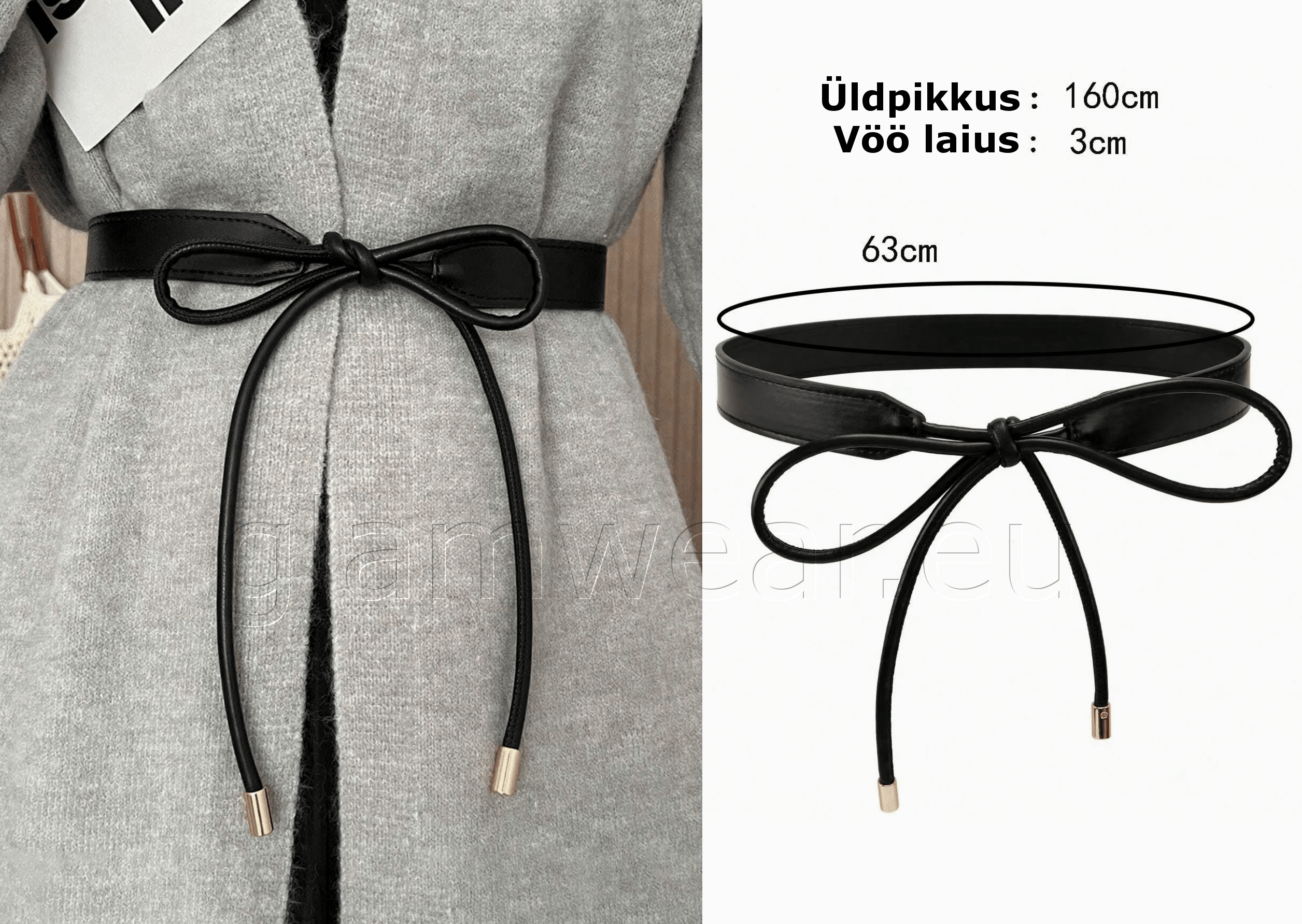 Kvaliteetne nahkne seotav vöö. Sobib nii kleitide peale, pluuside peale, kampsunite peale kui ka eest avatud mantlite kokku sidumiseks. Stiilne välimus, värvitoon must.