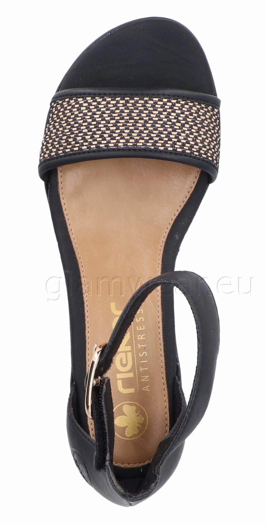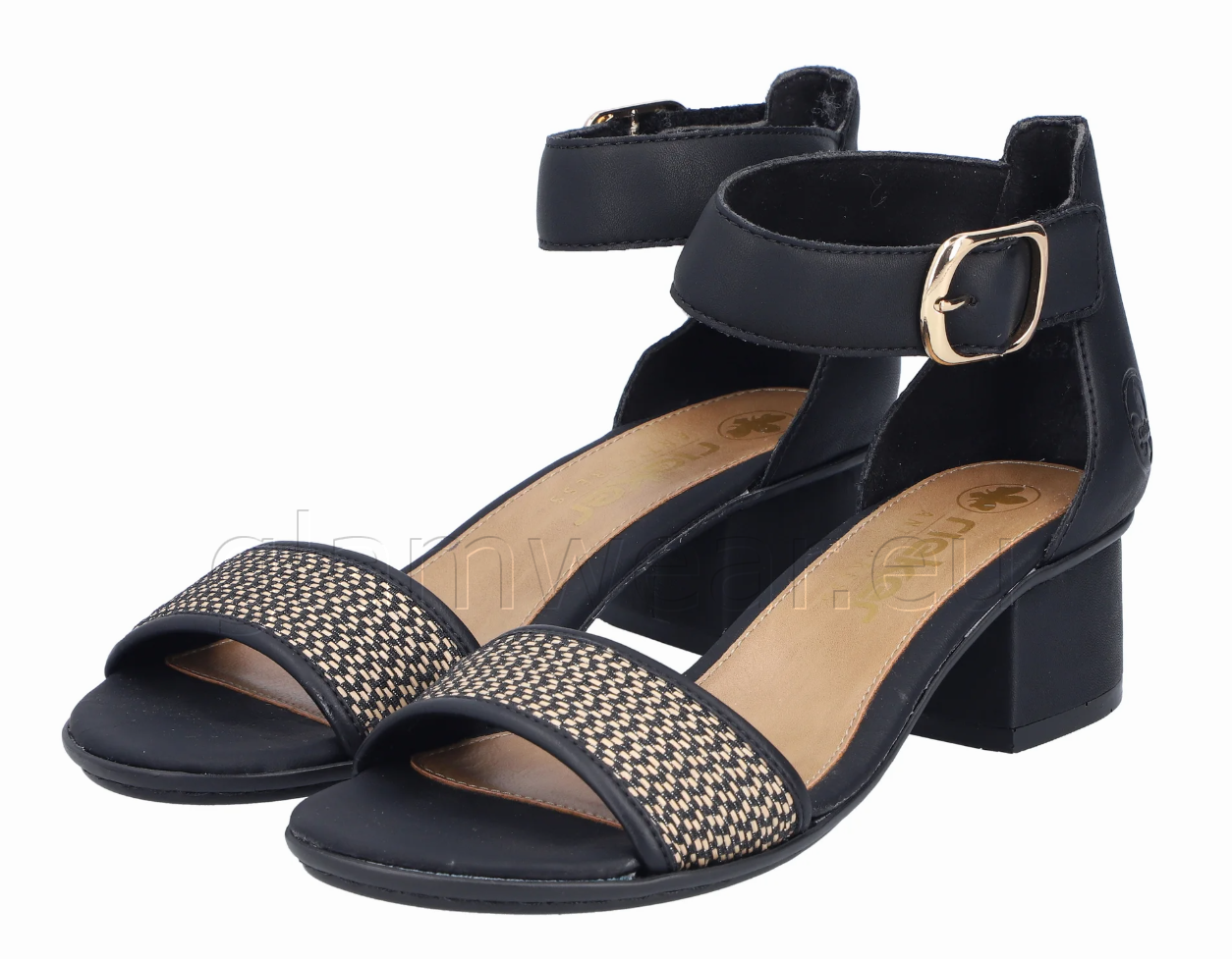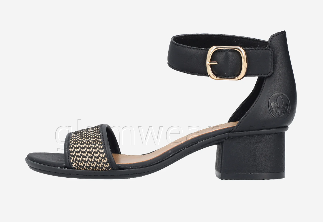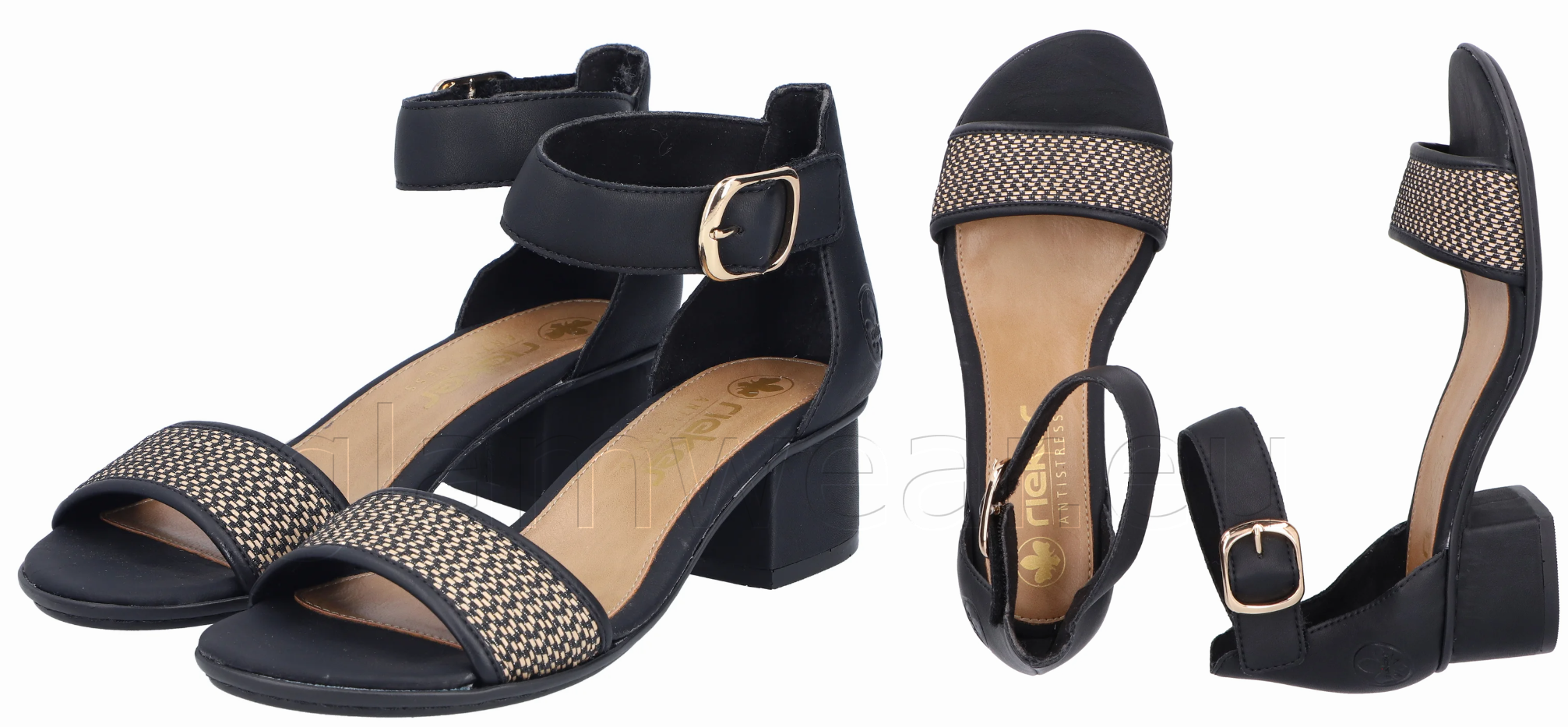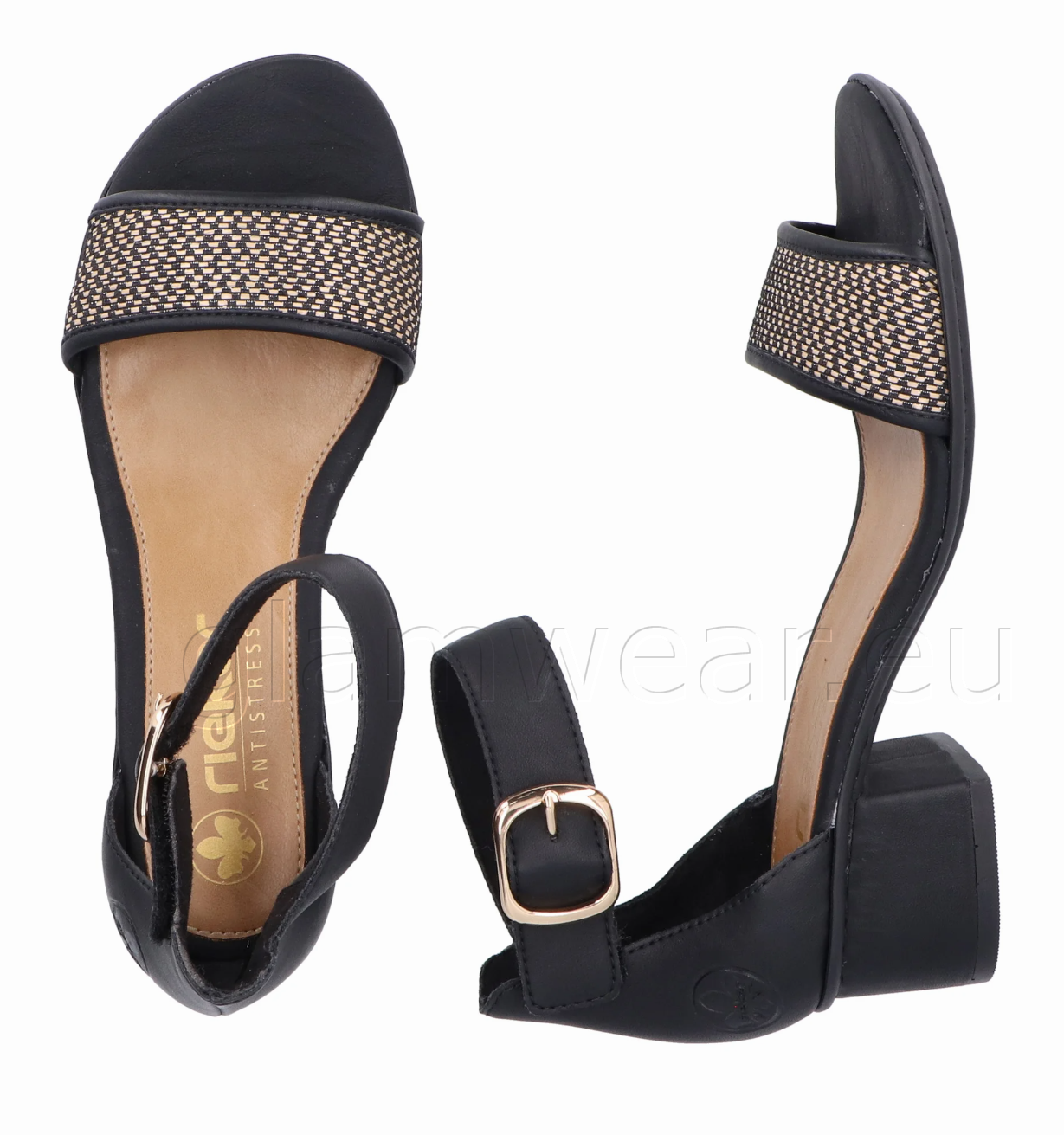 RIEKER sandaalid. Pehme tekstiilvooder tagab mugava kandmise ning kerge sünteetiline välistald lisab liikumisel kergust. 4 cm plokkkonts annab stabiilsust ja naiselikku välimust – sobivad nii igapäevaseks kandmiseks kui ka pidulikumaks puhuks.