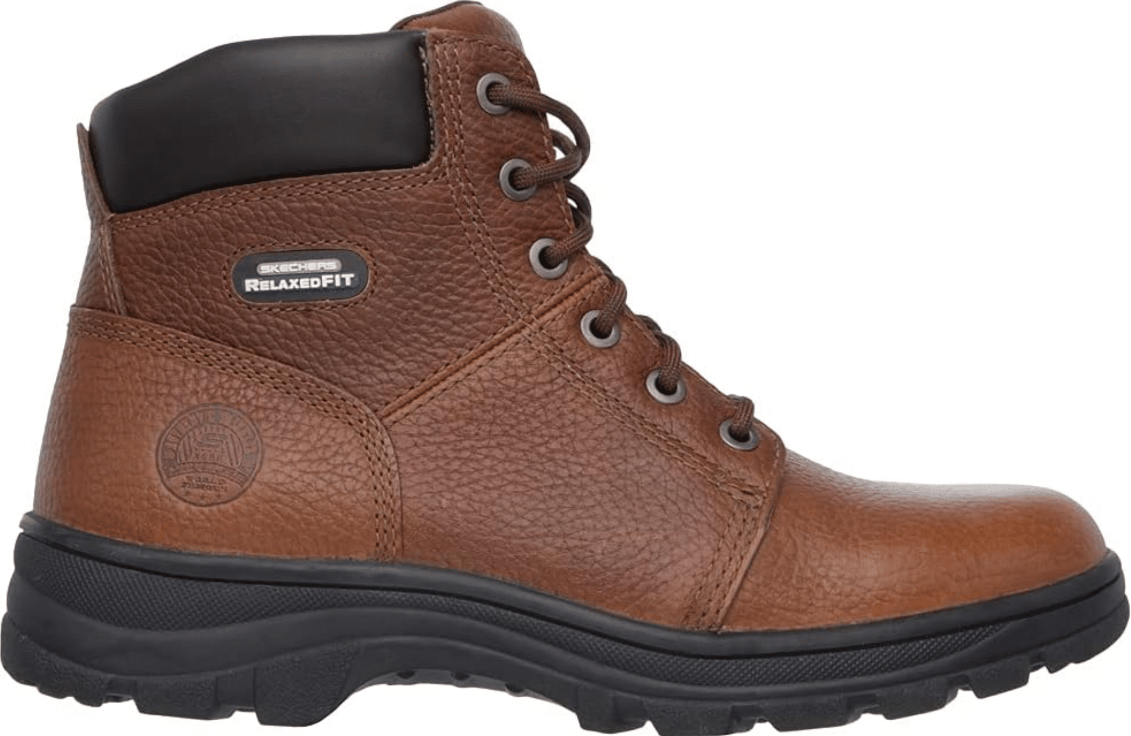 Skecherid Workshire täisnahast tugevdatud ninaosaga saapad meestele. Terasninaga, sobivad hästi turvasaabasteks, laiema lõikega mugavaks kandmiseks. Nahast pealispind dekoratiivsete õmblustega ja mäluvahust sisetald tagavad mugavuse, välistald kindla haarduvuse ka ebatasasel pinnal.