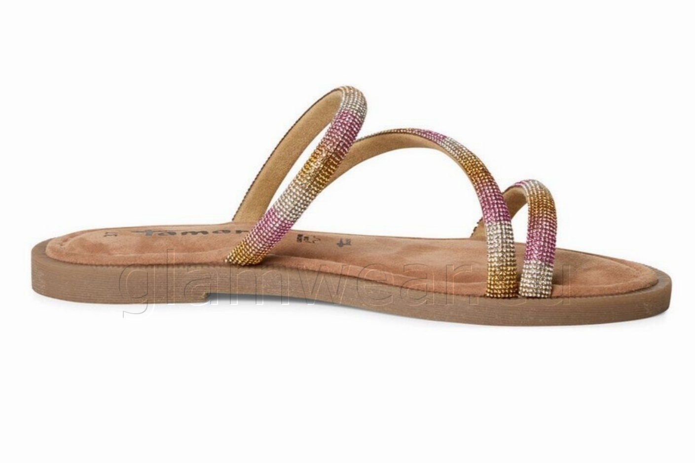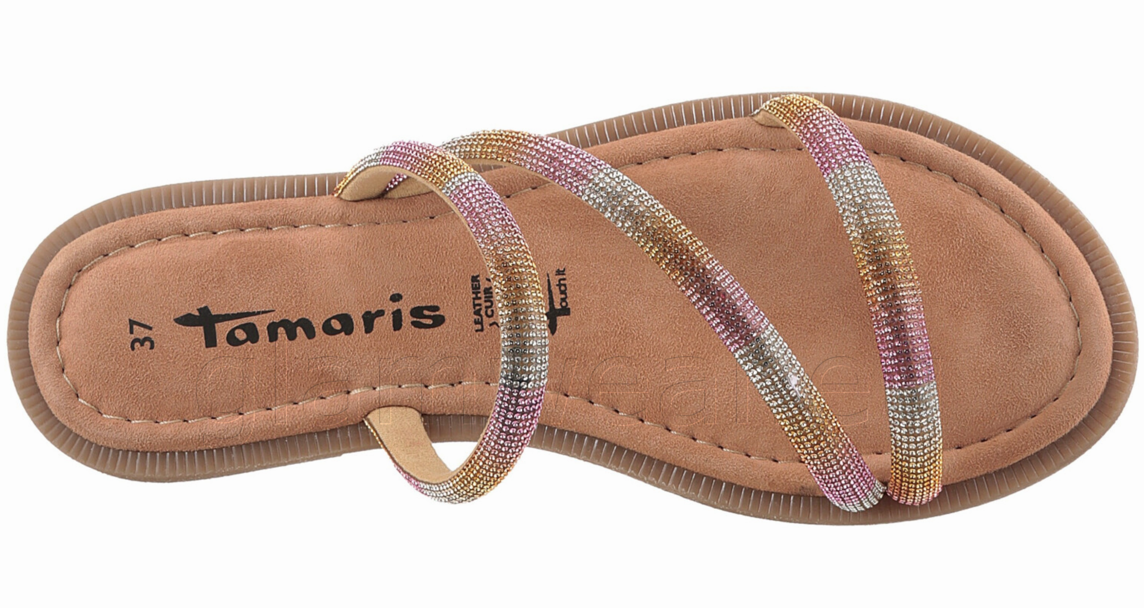 Tamarise sandaalid naistele. Moodsad sandaalid sädelevate rihmadega. Tekstiilist pealispind kaunistatud kivikestega. Mugav tekstiilvooder ning pehmendusega nahast sisetald Touch It tehnoloogiaga tagavad hea kandmismugavuse. Sünteetiline välistald väikese plokikontsaga.