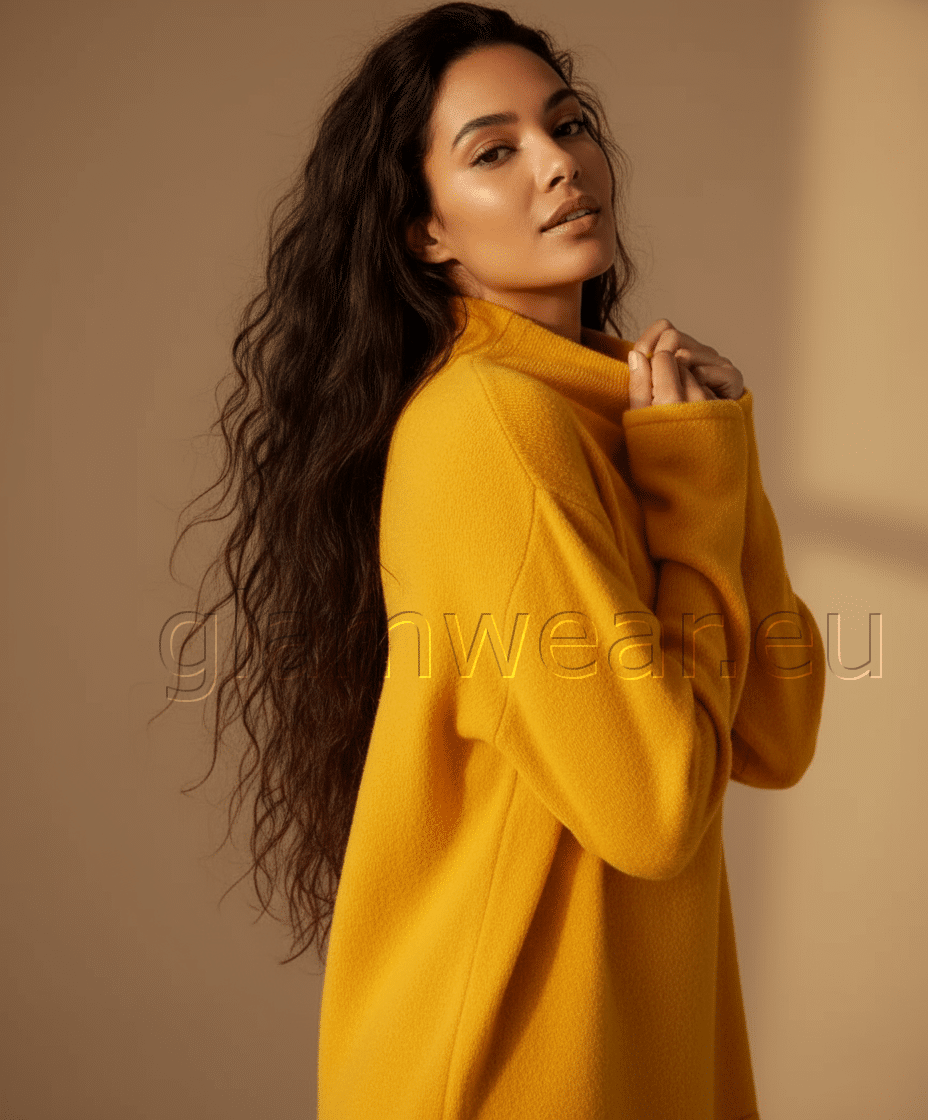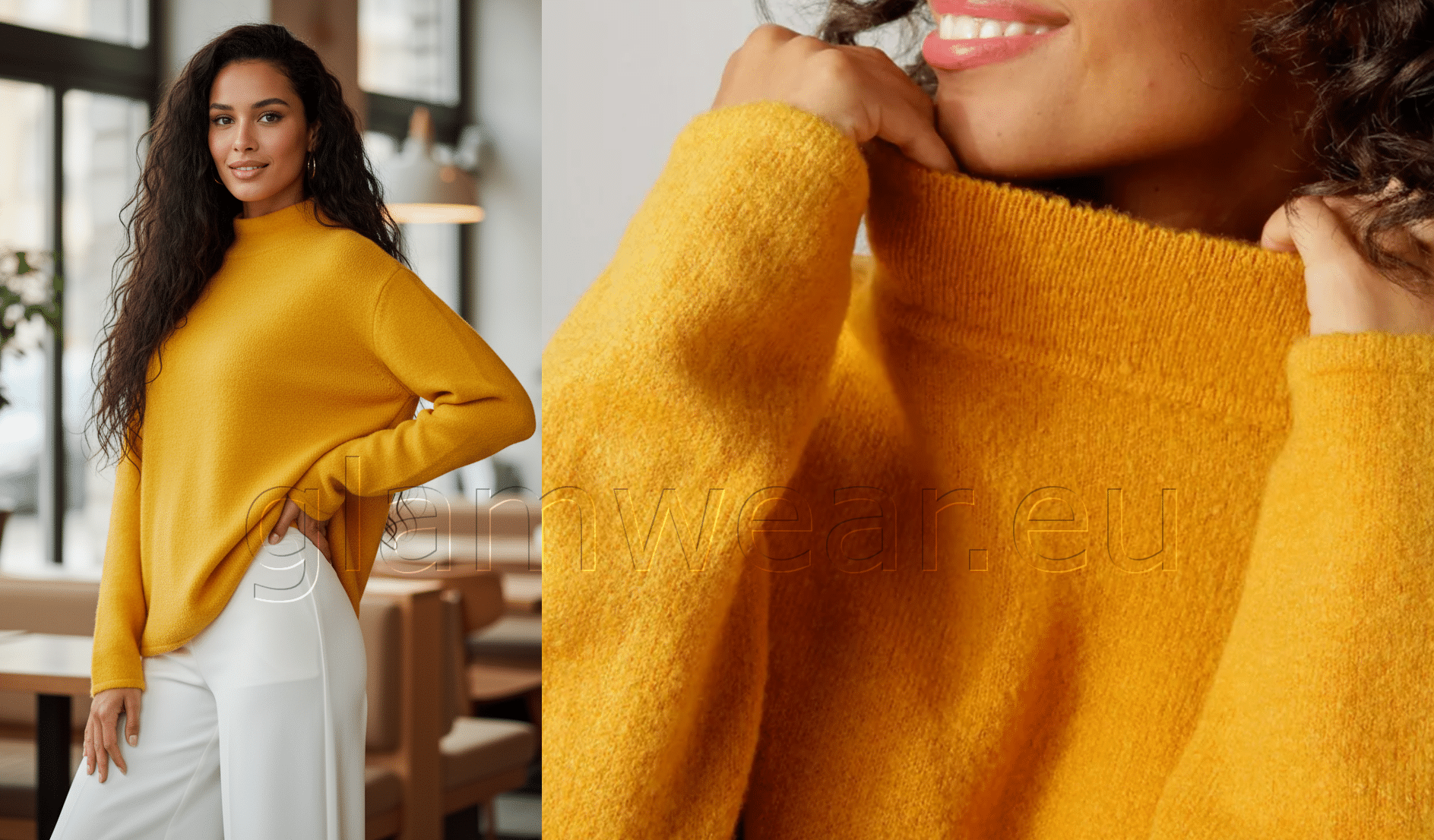 Aniston maisikollane pehme kampsun. Pehme kudum kergelt langetatud õlgadega. Püstise kraega, pikkade varrukatega, vabaaja lõikega, materjal: 75% polüakrüül, 23% polüamiid, 2% elastaan.
