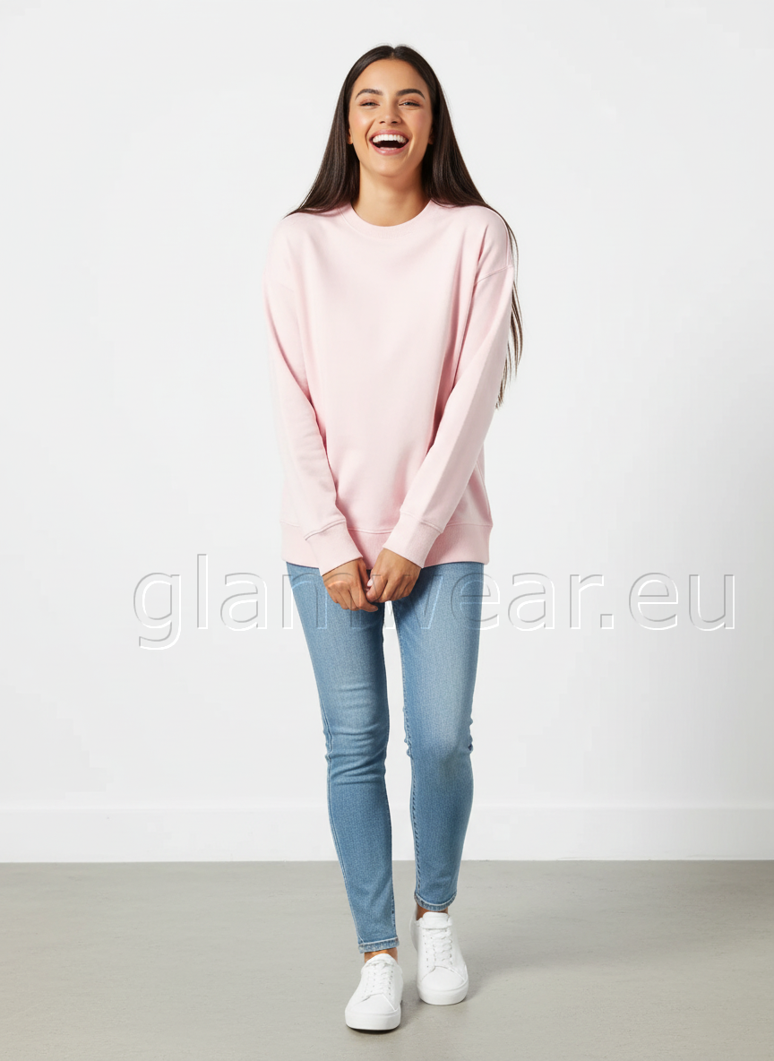 Janina klassikaline ja lihtne ümara kaelusega dressipluus naistele roosa 1211947-UXK-ROOS