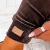 Kaheosaline veluurkomplekt. Super mugav ja kvaliteetne veluurkomplekt. Dressipluusil on moekas krae, millel on pilkupüüdev dekoratiivne kuldne nöör. Komplekt on valmistatud 95% puuvillast ja 5% polüestrist, mis muudab selle venivaks ja puudutamisel meeldivaks. Dressipluus ja püksid rõhutavad ja salendavad hästi figuuri. Pükstel taskud. Soonikäärised.