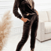 Kaheosaline veluurkomplekt. Super mugav ja kvaliteetne veluurkomplekt. Dressipluusil on moekas krae, millel on pilkupüüdev dekoratiivne kuldne nöör. Komplekt on valmistatud 95% puuvillast ja 5% polüestrist, mis muudab selle venivaks ja puudutamisel meeldivaks. Dressipluus ja püksid rõhutavad ja salendavad hästi figuuri. Pükstel taskud. Soonikäärised.