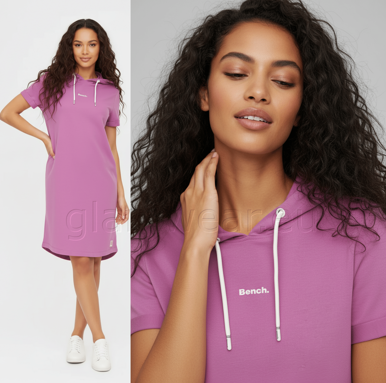 Bench lühikeste varrukatega casual kleit. Elastne materjal optimaalse mugavuse tagamiseks, valmistatud materjalist, mis on nahasõbralik ja hingav, kapuutsiga, kergesti hooldatav ja ideaalne igapäevaseks kandmiseks, materjal: 95% puuvill, 5% elastaan.