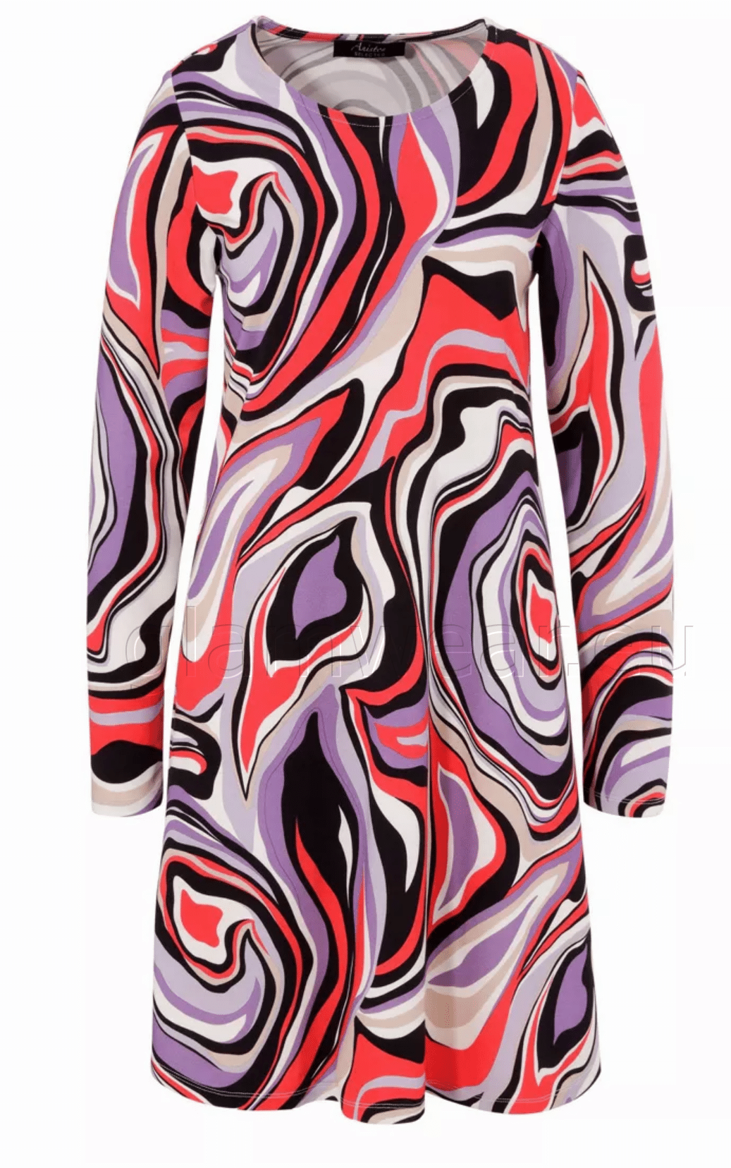 Aniston efektse trükisega pikkade varrukatega kleit. Mõnus stretš materjal, seelikuosa laienev. Ümar kaelus. Materjal: 85% viskoos, 10% polüester, 5% elastaan.