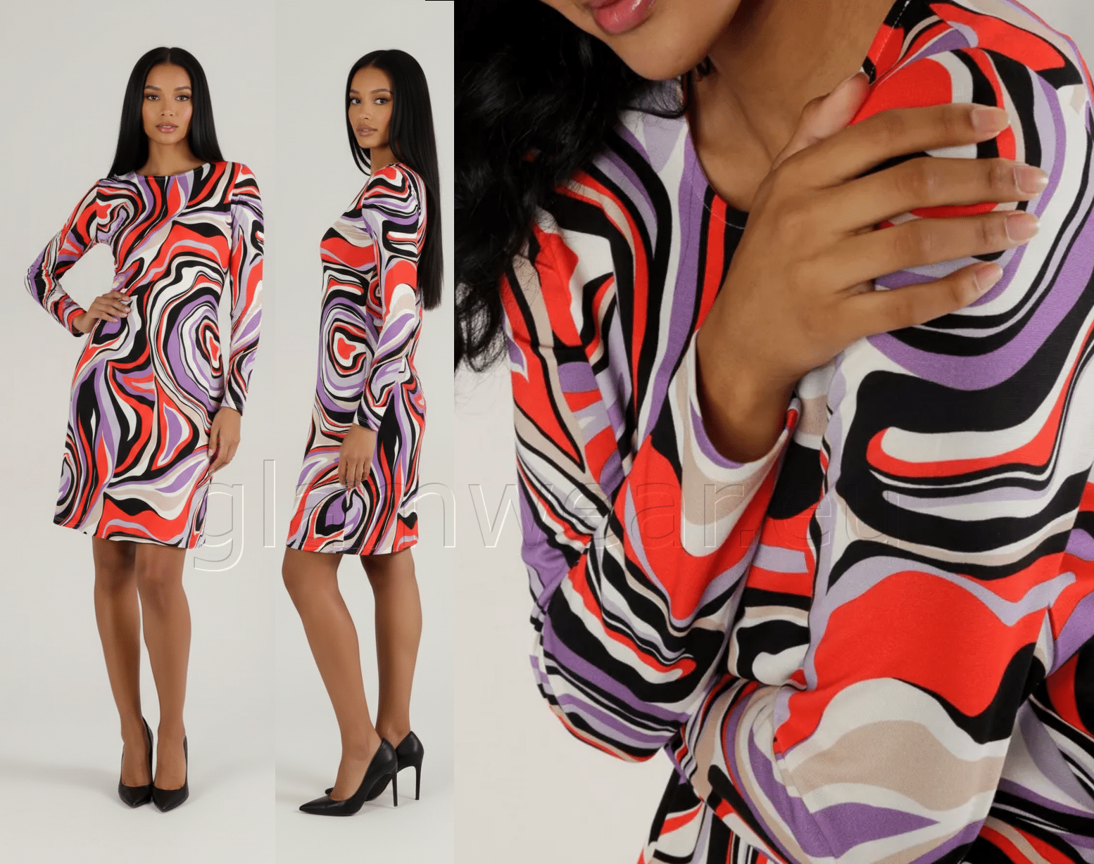 Aniston efektse trükisega pikkade varrukatega kleit 44790042-UXR