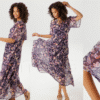 Aniston kaunis šifoonkleit. Õrnast šifoonist kleit, voodriga, V-kaelusega ja lipsuga ning lühikeste, laiade varrukatega, avara lõikega maksikleit, materjal: 100% polüester.