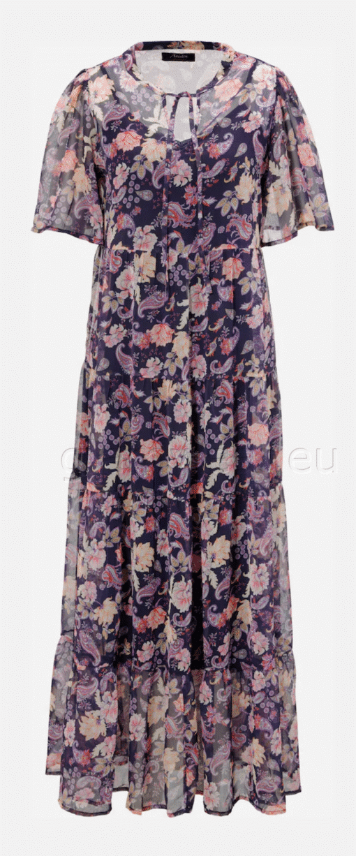 Aniston kaunis šifoonkleit. Õrnast šifoonist kleit, voodriga, V-kaelusega ja lipsuga ning lühikeste, laiade varrukatega, avara lõikega maksikleit, materjal: 100% polüester.