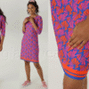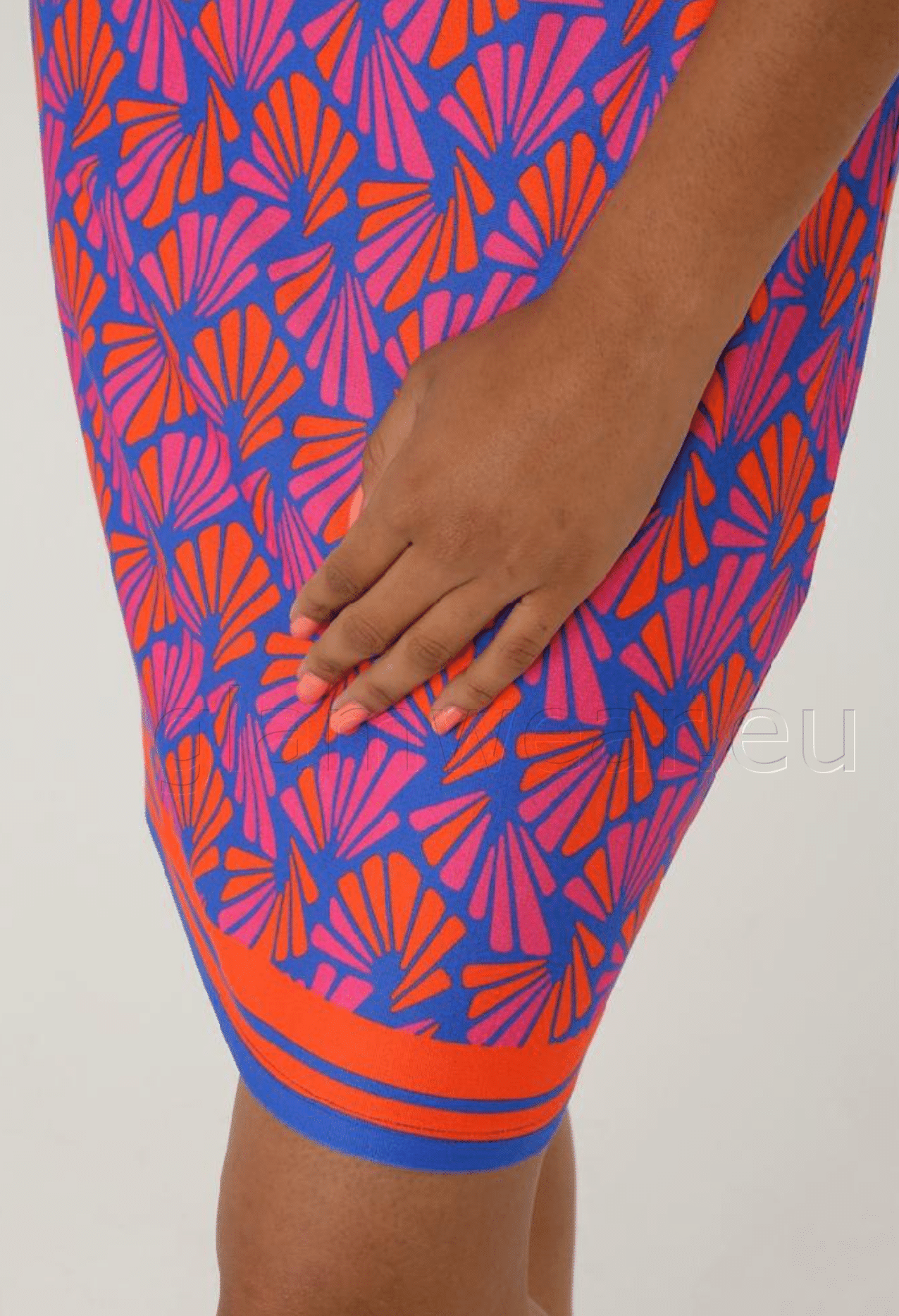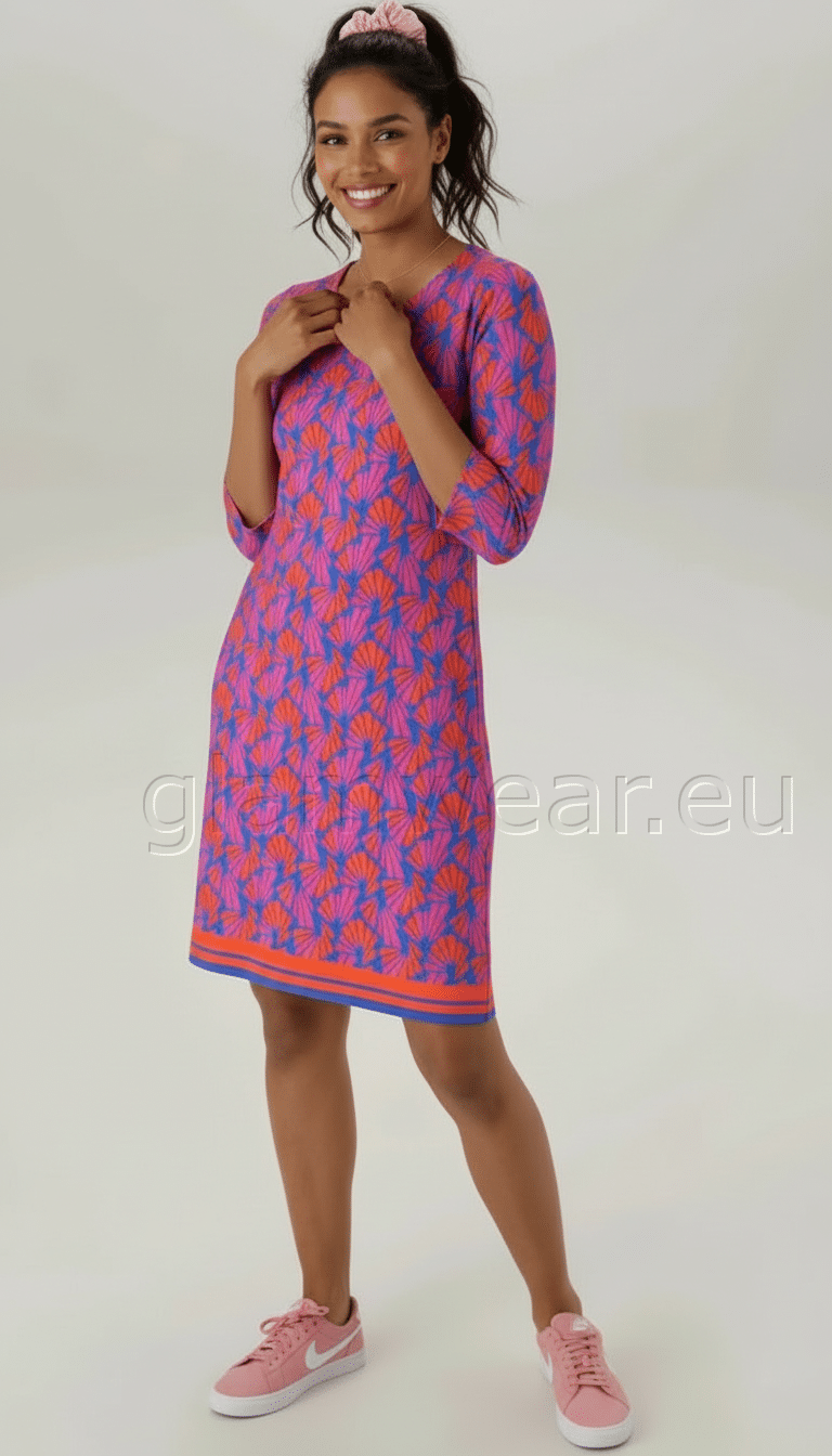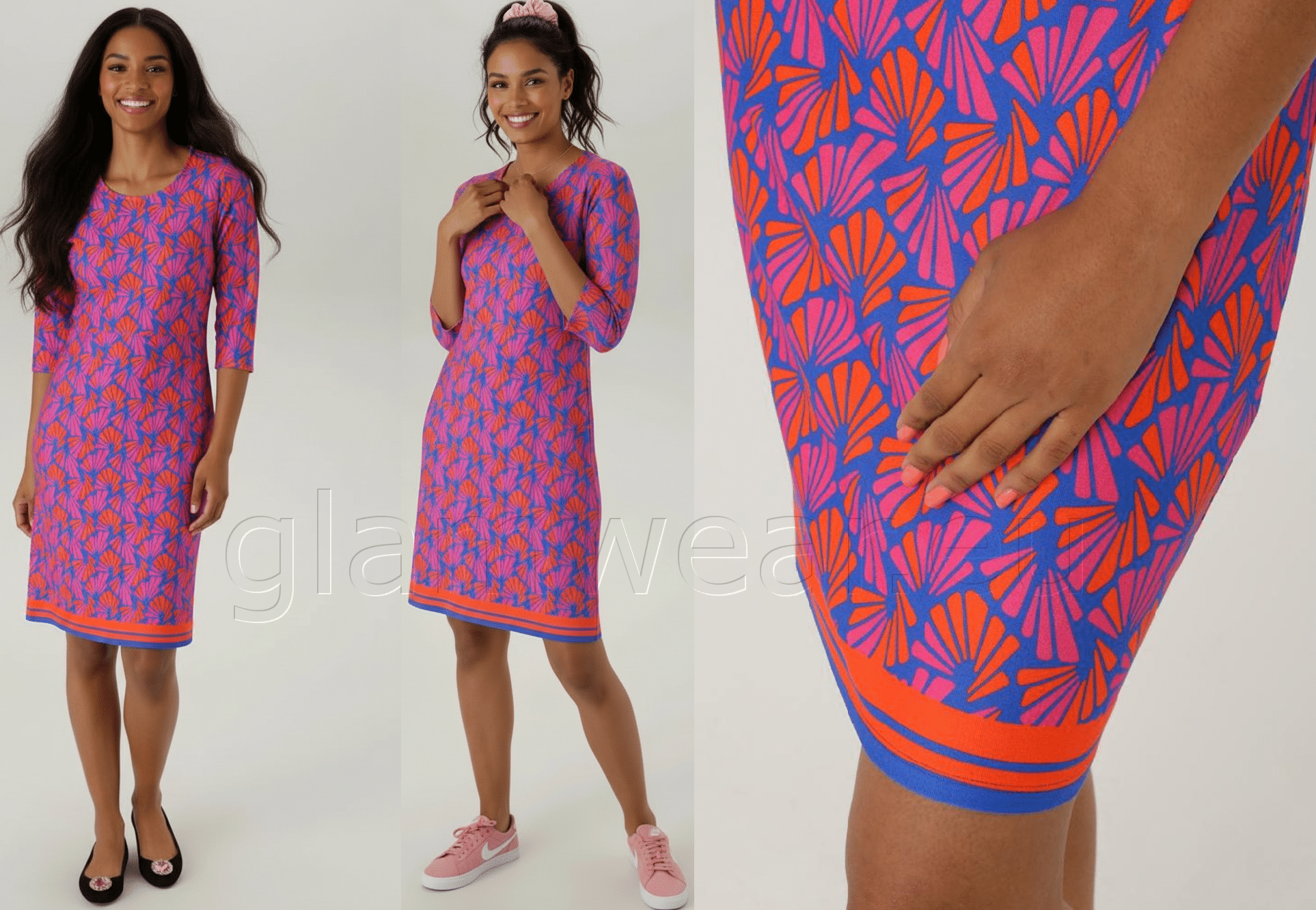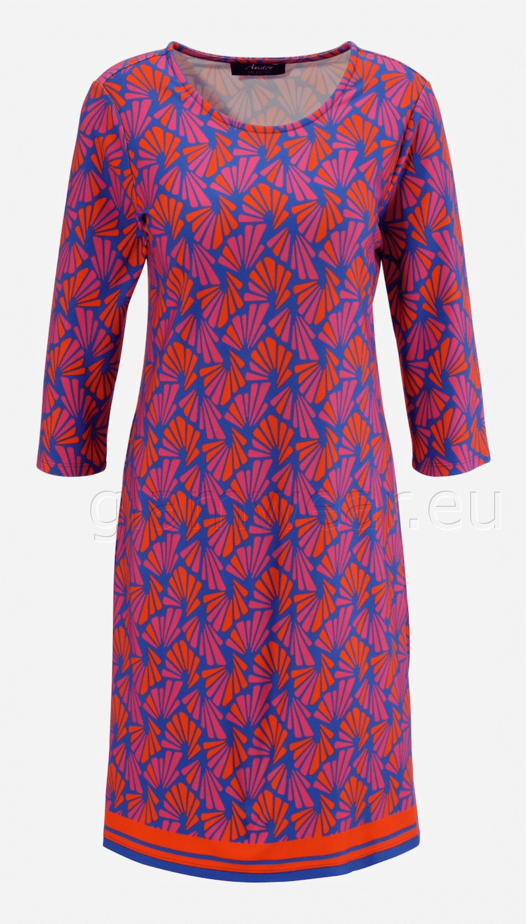 Aniston kena mustriga värvikas kleit. Kleit pehmest Milano soonikkoest, ilmeka retrohõngulise mustriga, 3/4 varrukatega, põlveni ulatuv pikkus, materjal: 89% viskoos, 9% polüester, 2% elastaan.