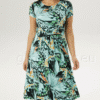 Aniston efektse mustriga stretš kleit. Valmistatud venivast viskoosist, kroogitud vöökohaga, ümara kaeluse ja lühikeste varrukatega, mõnus põlvepikkus, materjal: 95% viskoos, 5% elastaan.