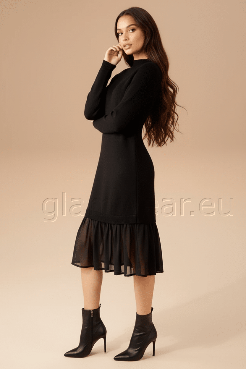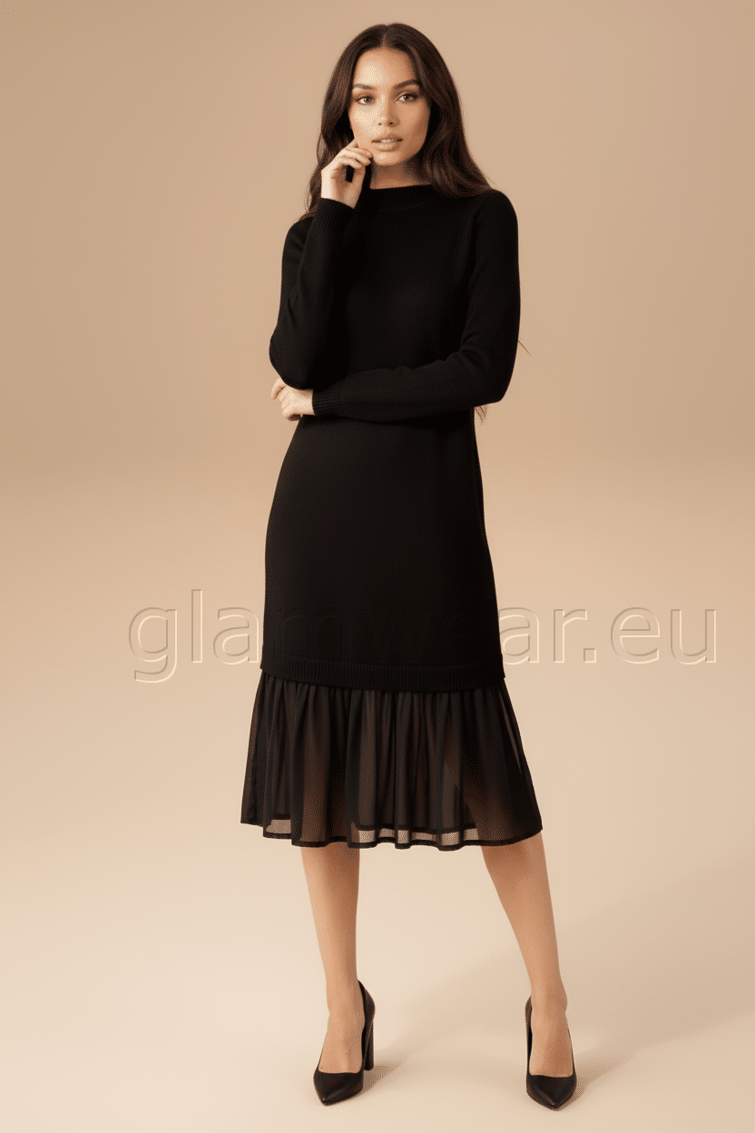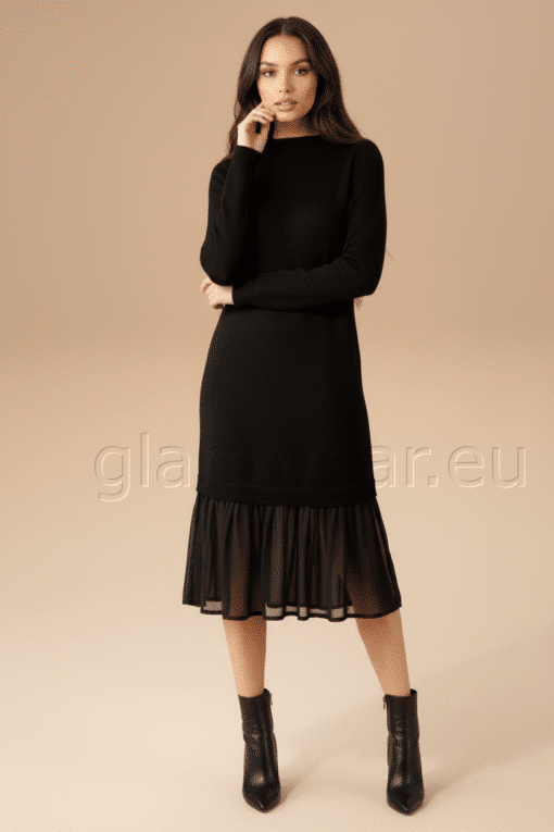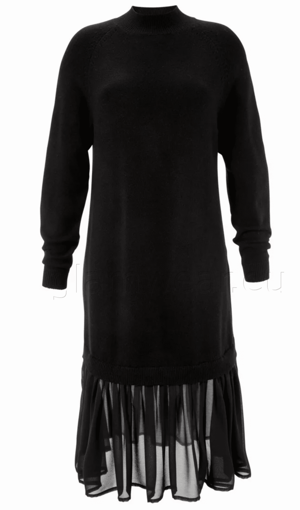 Aniston šifoonist alläärega kudumkleit. Püstkraega, pikkade raglaanvarrukatega, šifoonvoltidega allääres, pehmest peenest koest, materjal: 52% viskoos, 26% polüester, 22% polüamiid. Alläär: 100% polüester. Värvitoon: must.