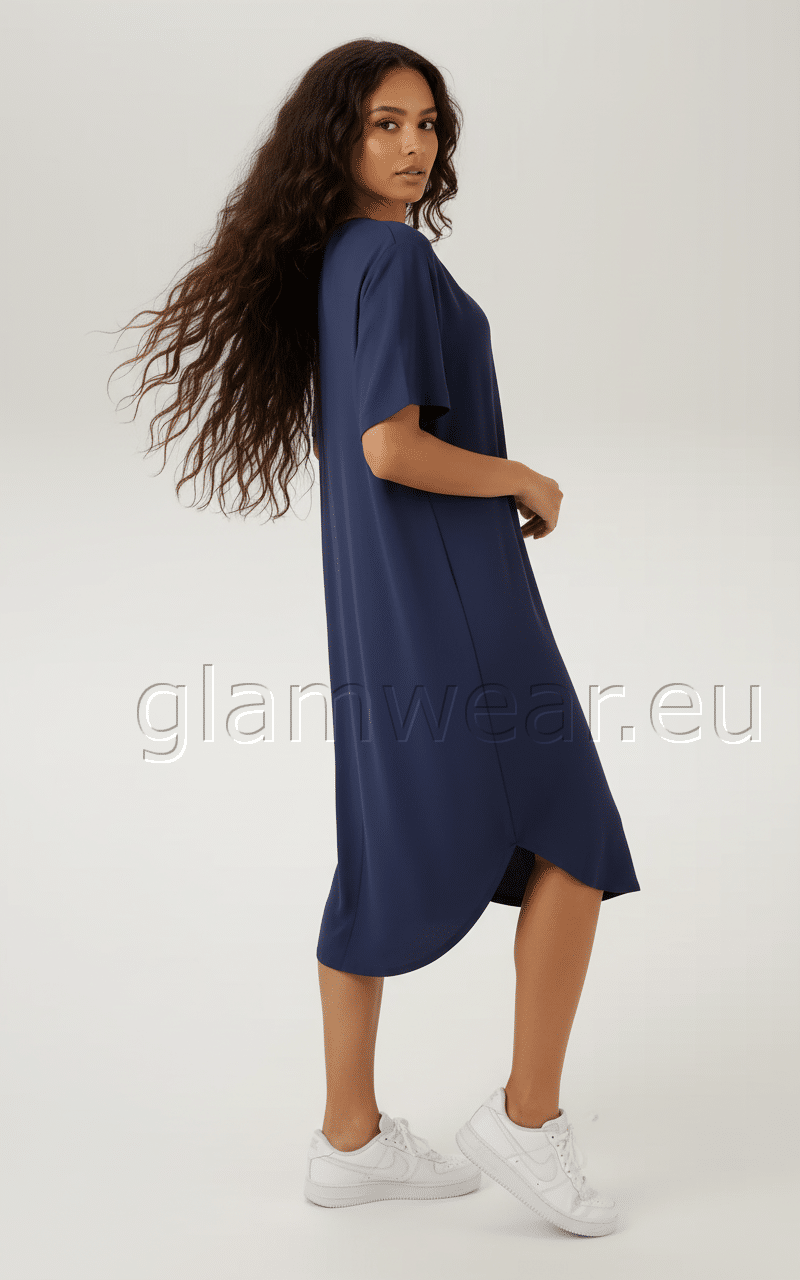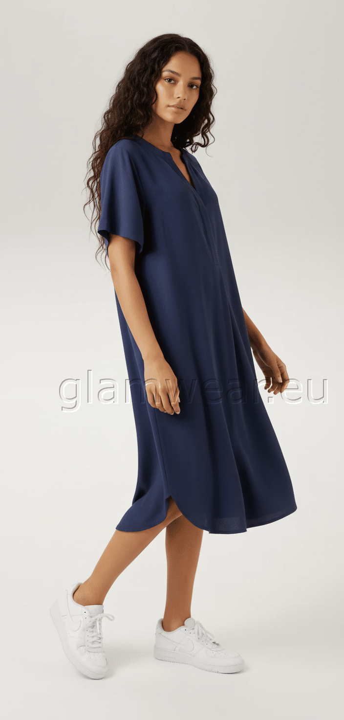 Aniston vabalt langev viskooskleit. Pehmest viskoosist kleit, dekoratiivne V-kaelus, lühikesed varrukad, ümar alläär, põlvedeni, avara lõikega, materjal: 100% viskoos.