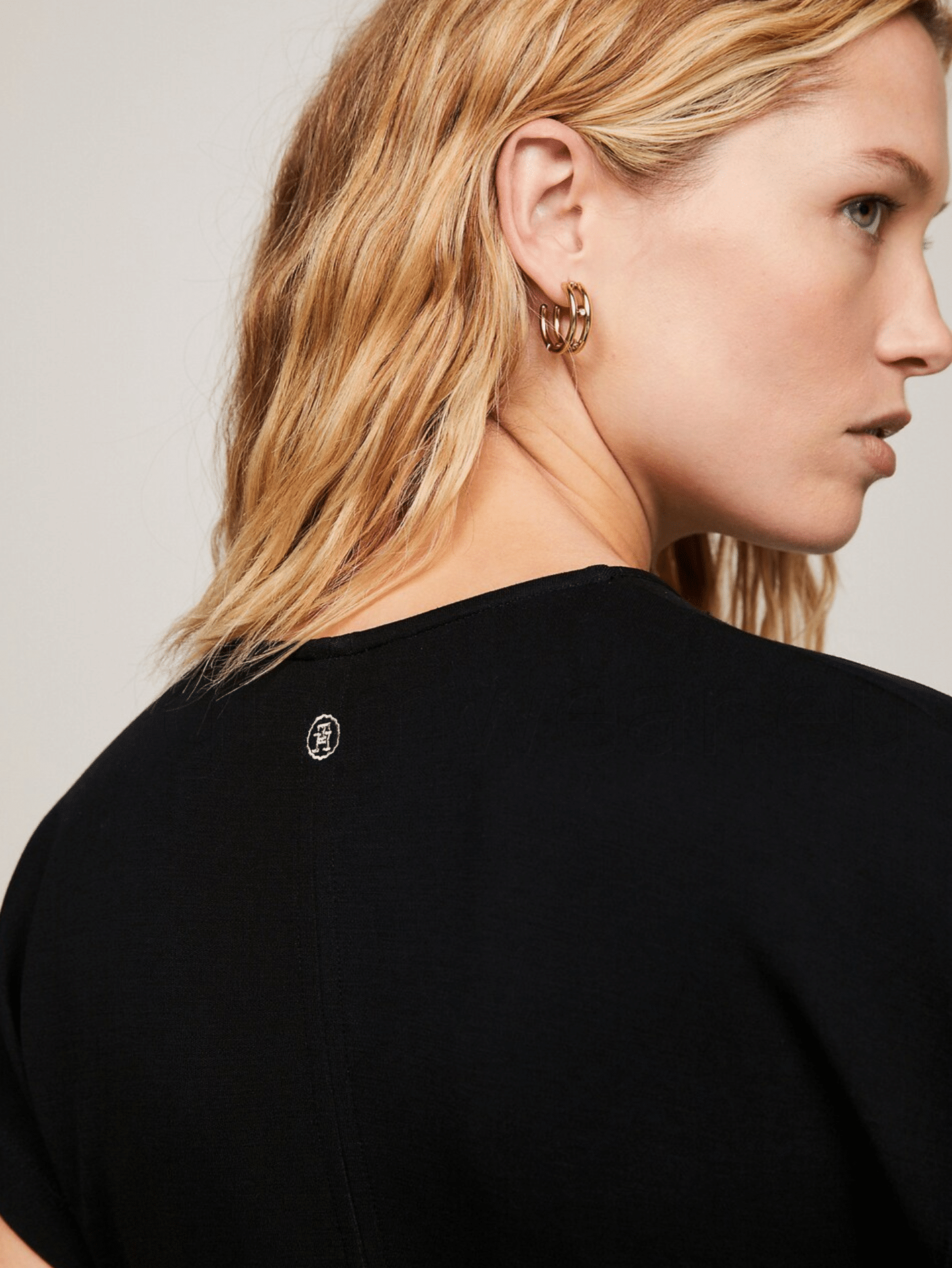 Tommy Hilfiger kvaliteetne ja naiselik kleit. Elastne materjal: pakub optimaalset mugavust ja liikumisvabadust. Kvaliteetne lüotselli, puuvilla ja elastaani segu: tundub nahal pehme ja kergesti hooldatav. Põlvepikkus: ideaalne nii vabaaja kui ka pidulikeks sündmusteks. V-kaelusega: rõhutab elegantselt kaelapiirkonda. Materjal: 47% lüotsell, 41% puuvill, 12% elastaan.