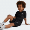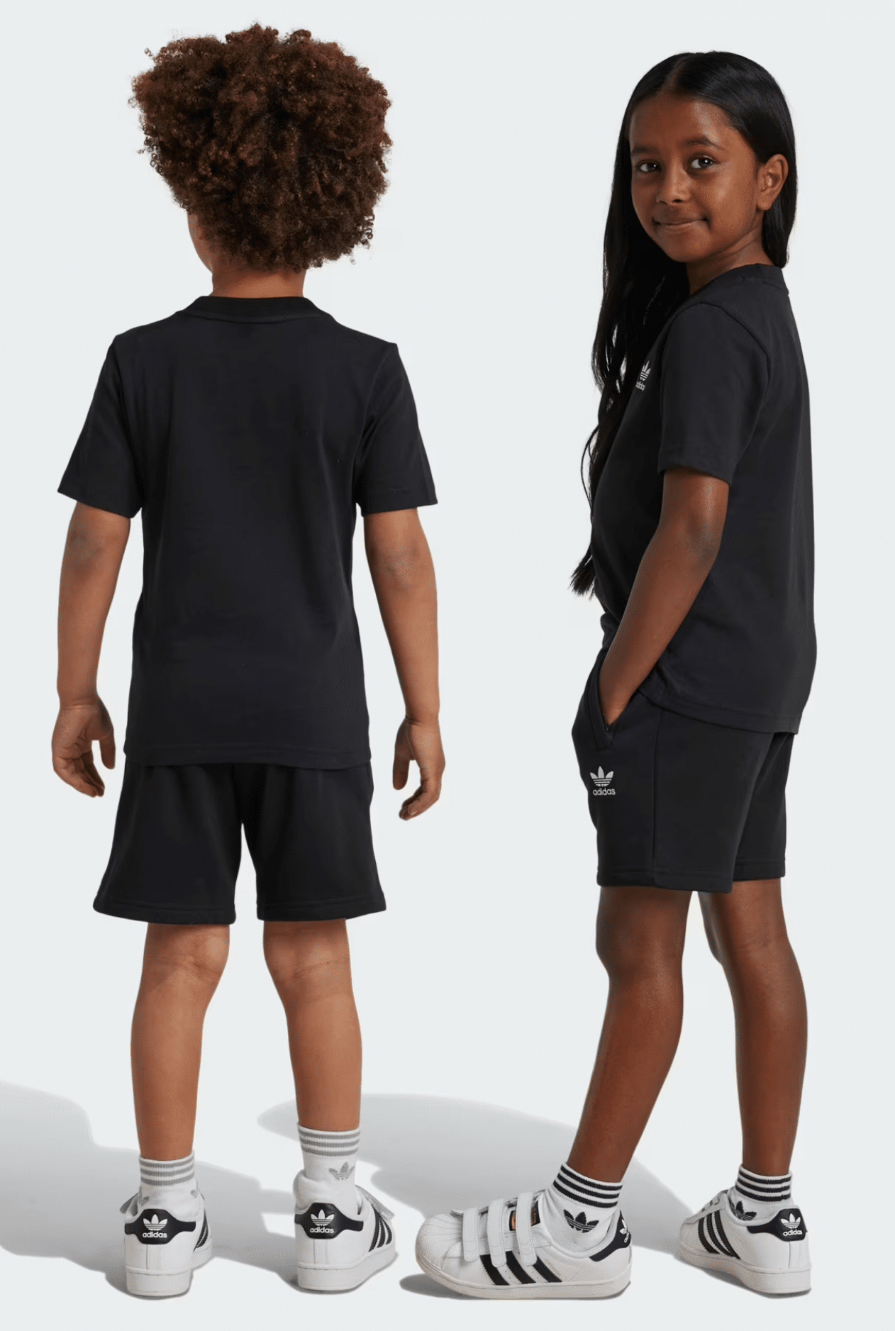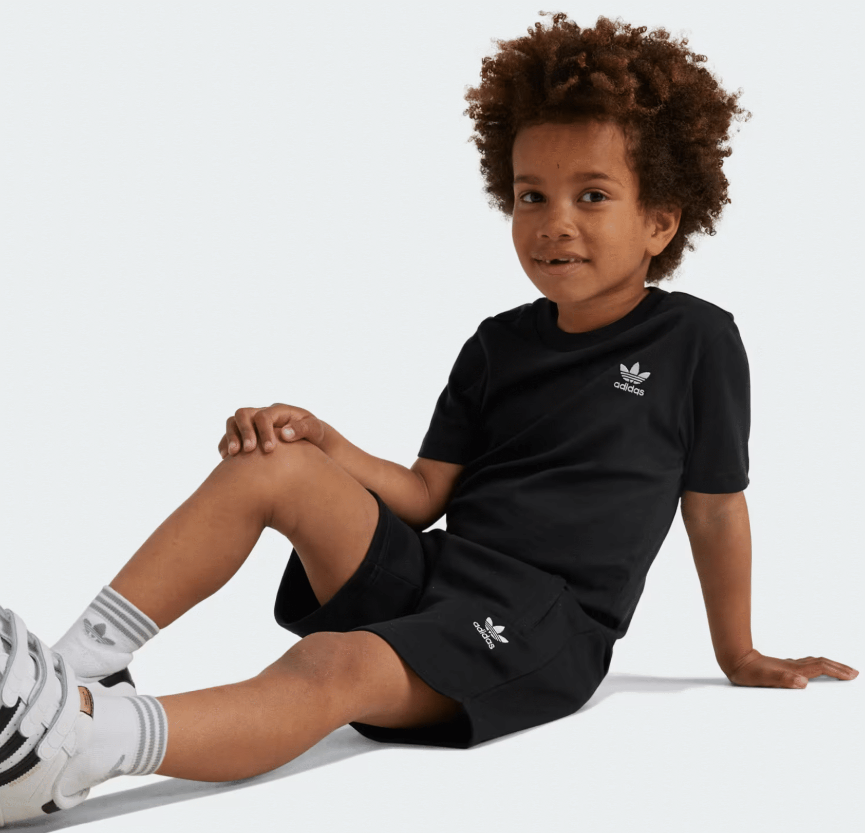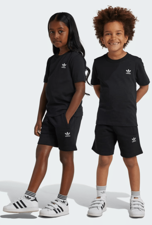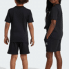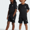 ADIDAS vabaaja komplekt lastele. Komplekti kuulub särk+püksid. Vabaaja komplekt sobib nii tüdrukutele kui poistele. Sobib nii vabal ajal kandmiseks kui ka treeningul. Soonikkoes ümar kaelus, veniva reguleeritava vöökohaga lühikesed püksid, pükstel on ka taskud. Tikitud logod. Materjal: 70% puuvill, 30% polüester.