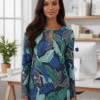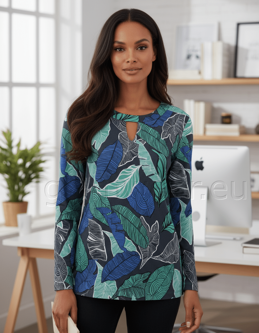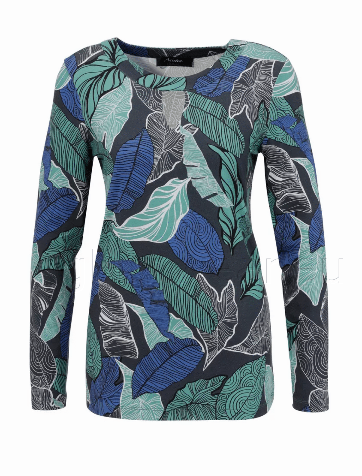 Aniston pehmest kangast pikkade varrukatega pluus. Särk pehmest ja venivast viskoosist, väike väljalõige ümara kaelusega, pikad varrukad, särvad värvid, materjal: 95% viskoos, 5% elastaan.