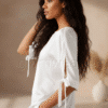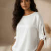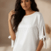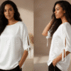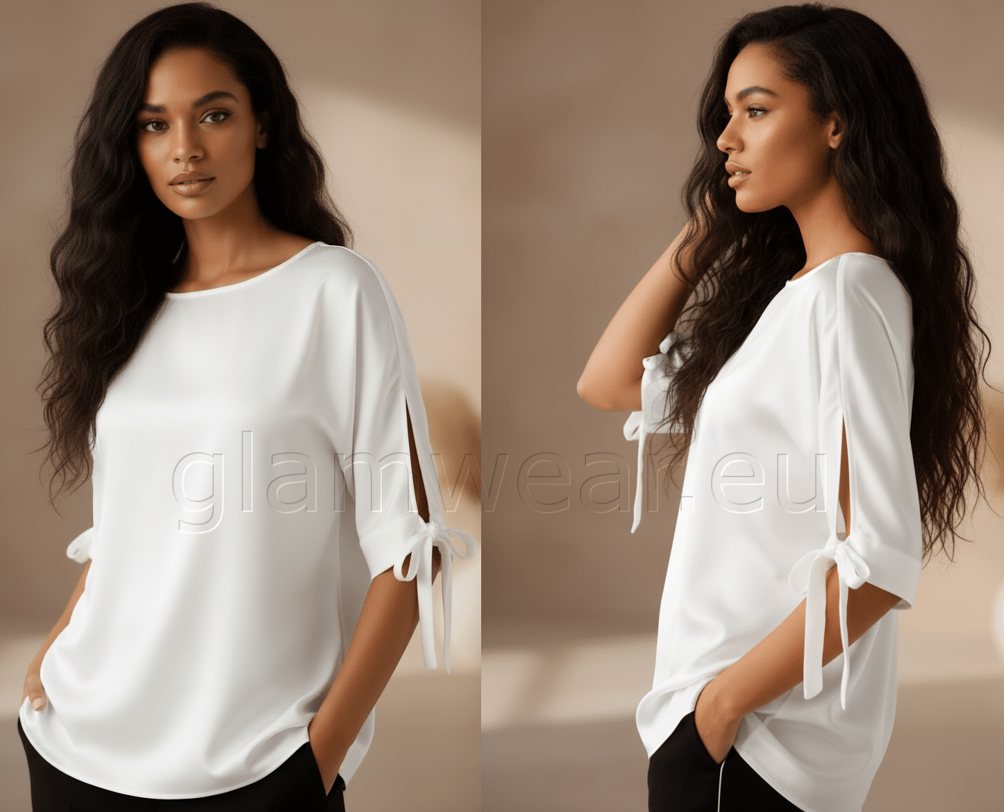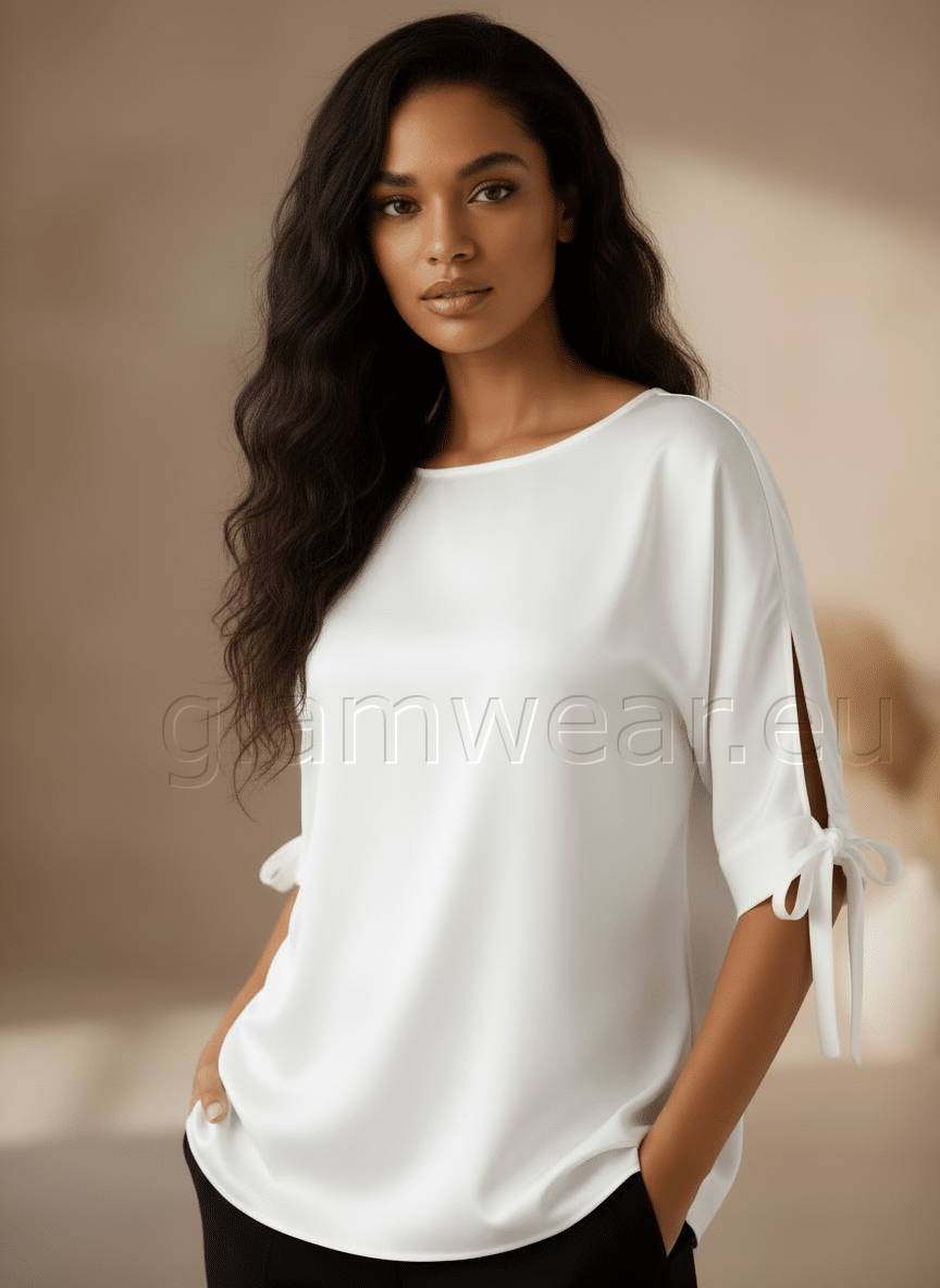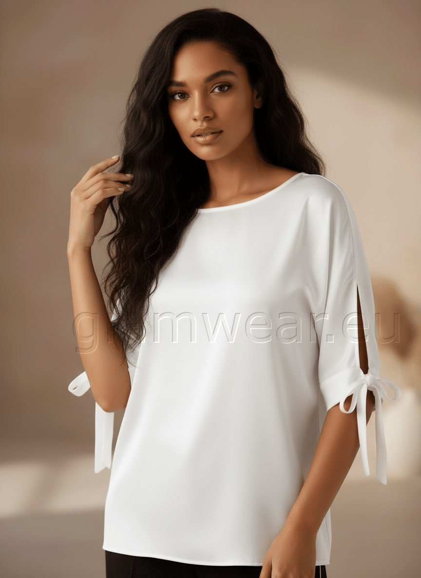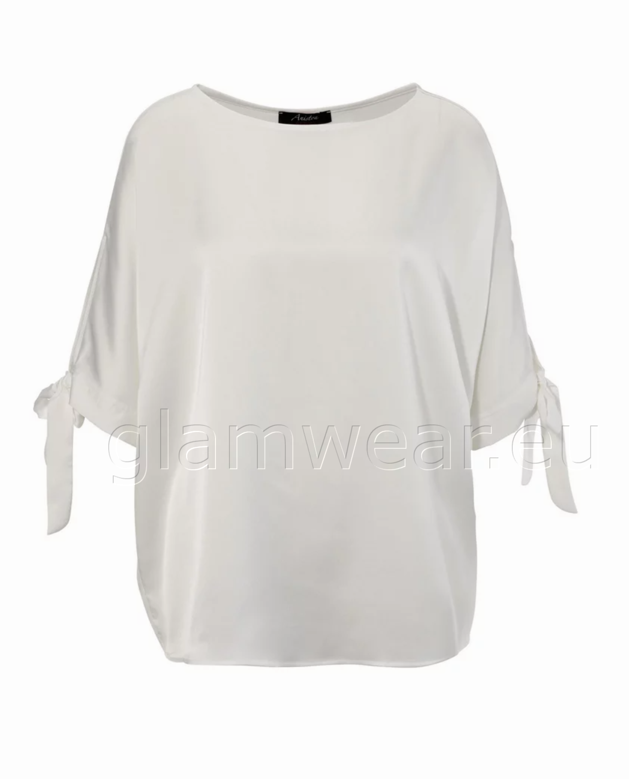Aniston pidulik satiinpluus. Kergelt läikivast satiinist pluus, lipsudetail 3/4 pikkustel varrukatel, nahkhiirelõikelised varrukad, lai lõige, materjal: 100% polüester.