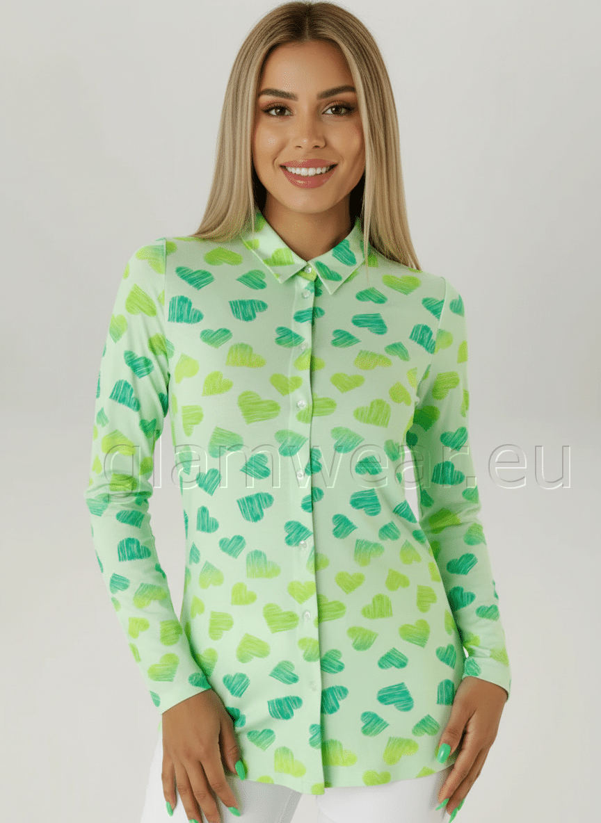 Aniston romantilise südamekujulise mustriga pluus. Pehmest ja venivast viskoosist, särkstiilis pluus laia nööbiliistuga, pikkade varrukatega, materjal: 95% viskoos, 5% elastaan.
