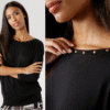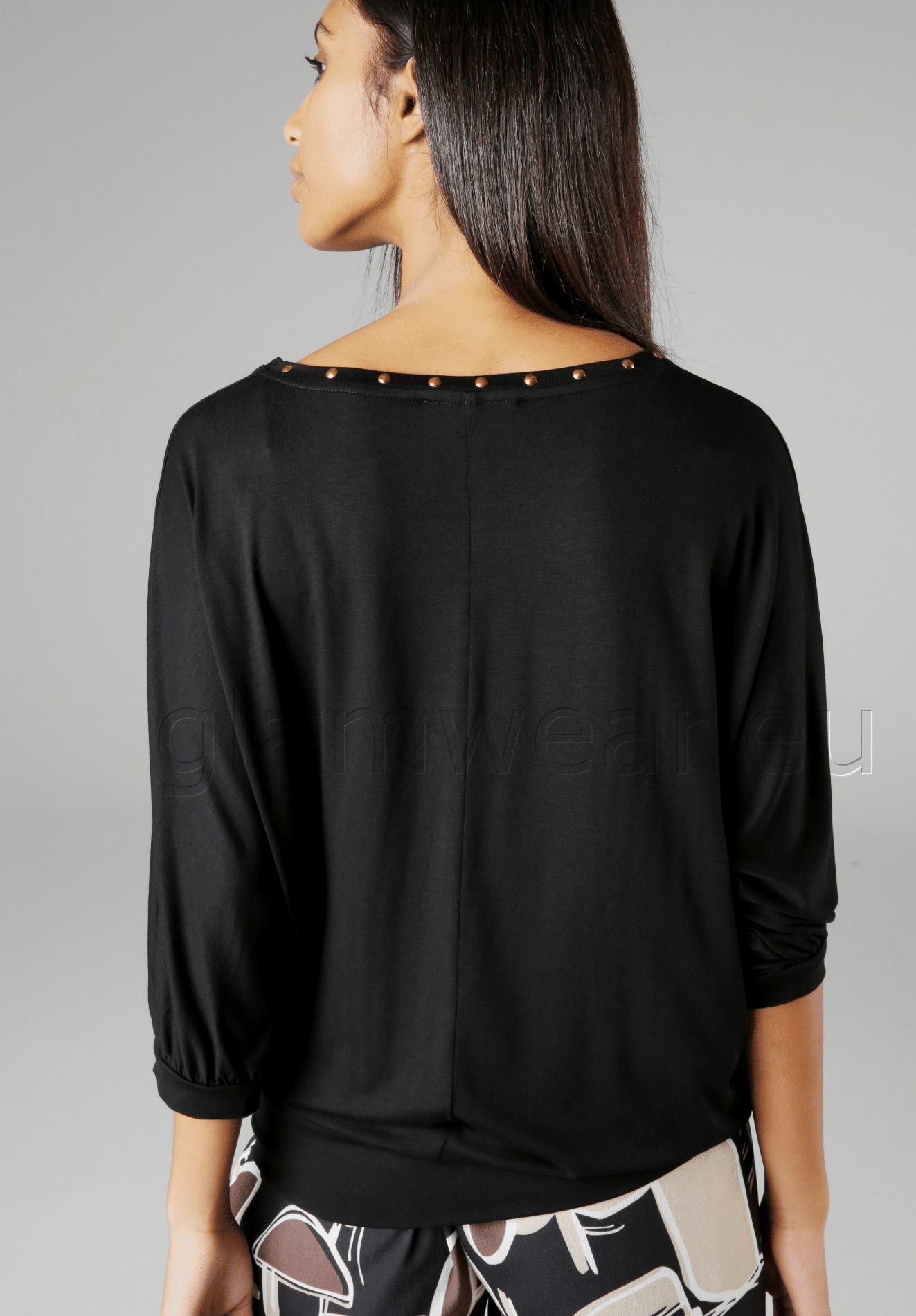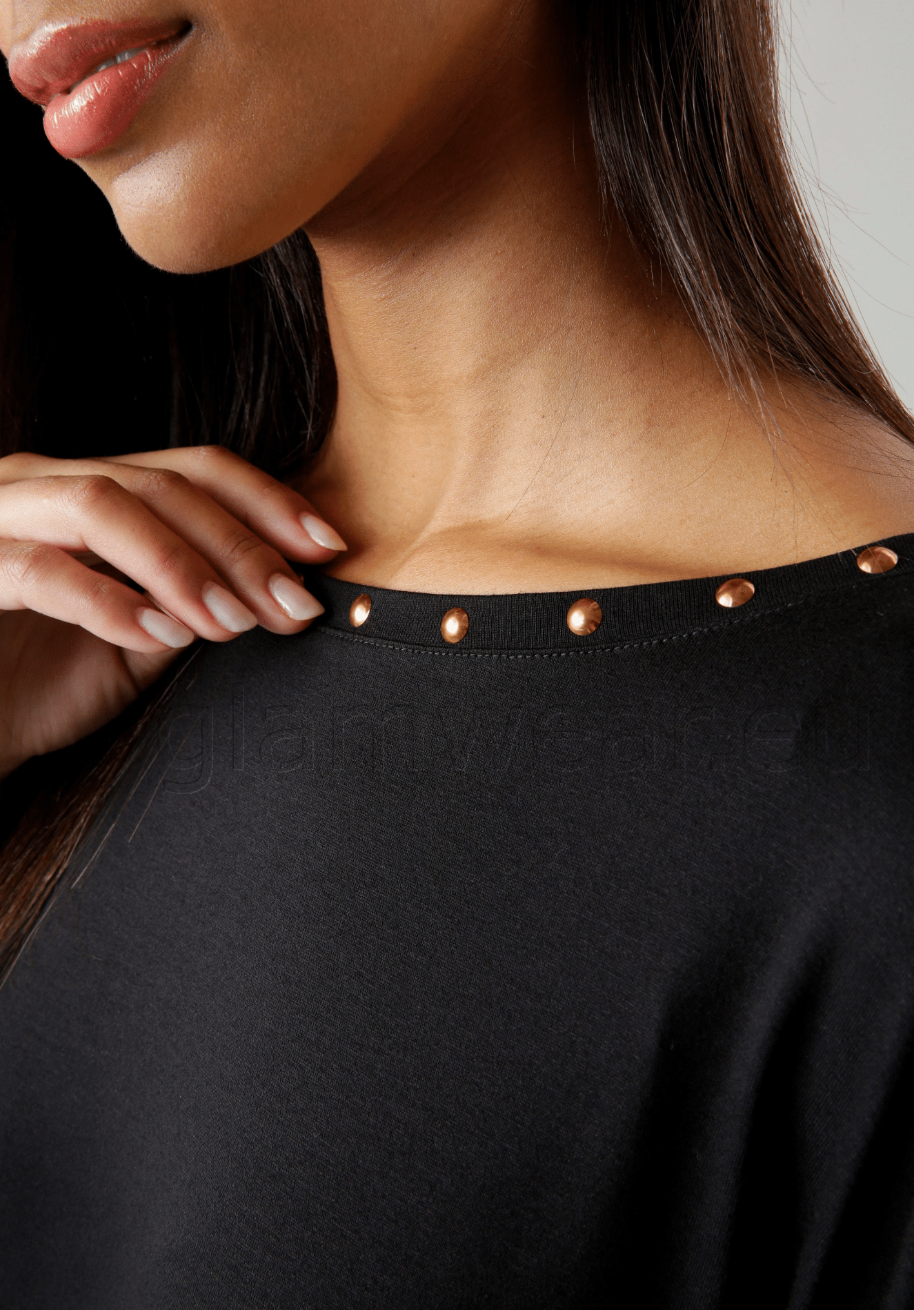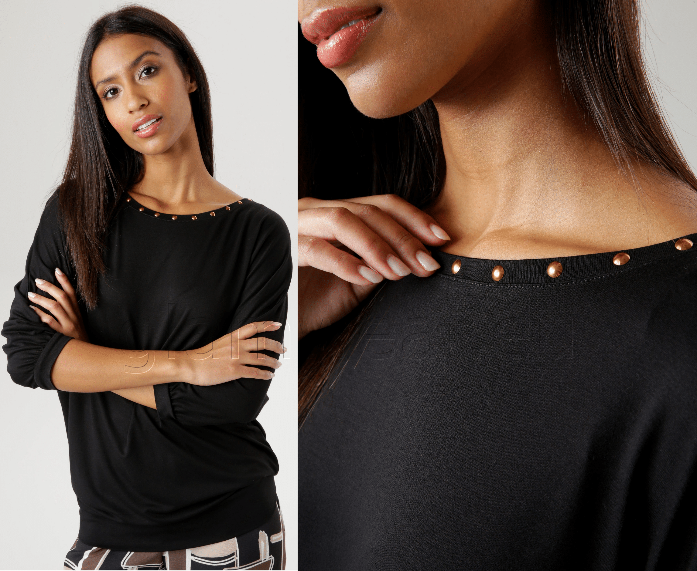 Aniston vaba lõikega pluus. Ümara neetidega kaunistatud kaelusega, 3/4 pikkused nahkhiirelõikelised varrukad, lai alläär, avar lõige, materjal: 95% viskoos, 5% elastaan.