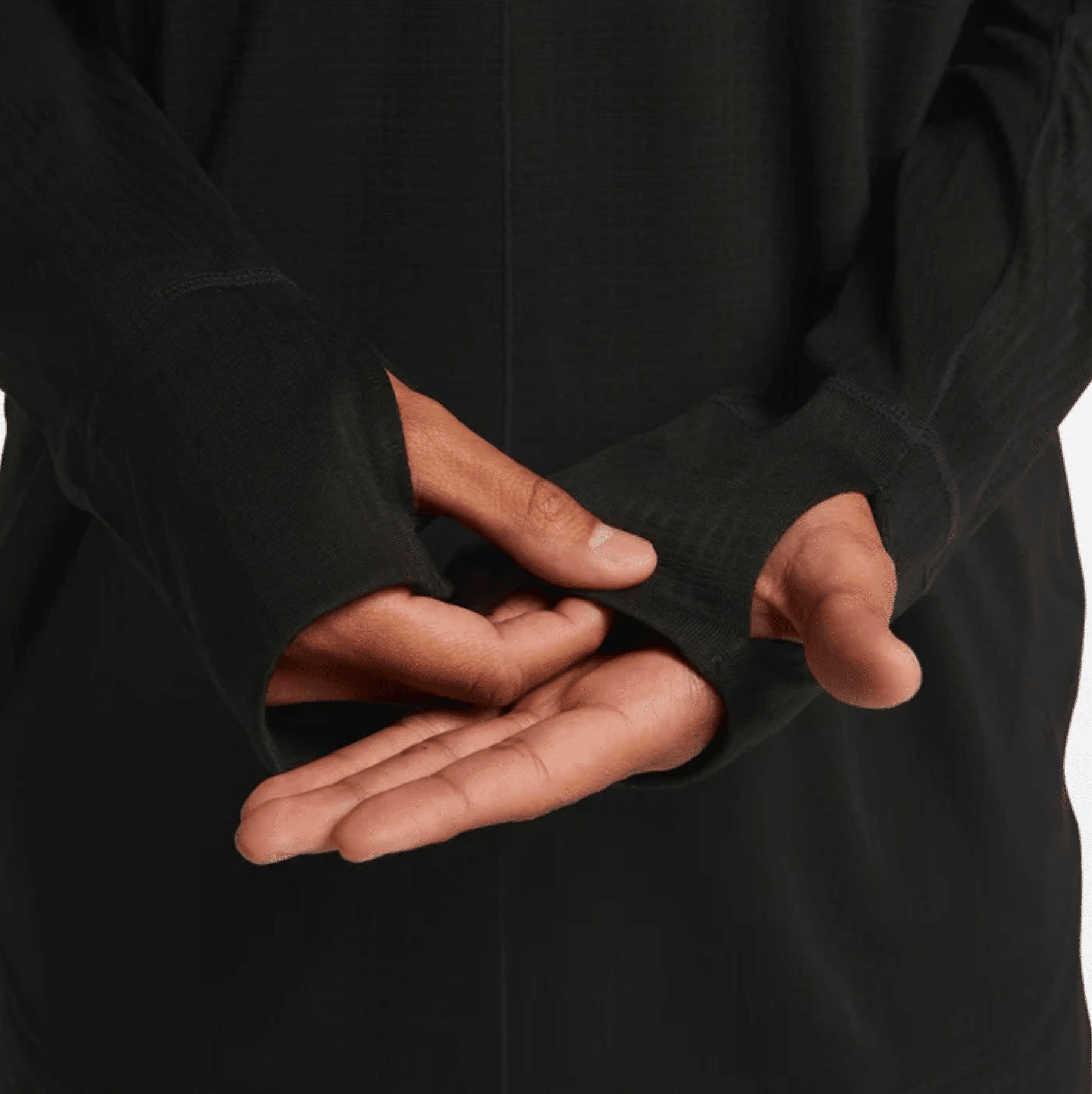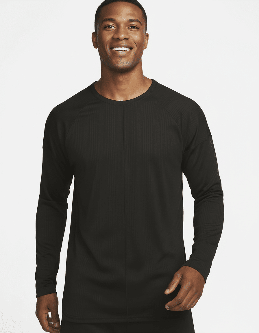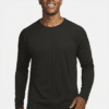 NIKE dry-fit pehme kvaliteetne treeningpluus meestele. Nike Dri-FIT tehnoloogia juhib higi nahalt eemale, võimaldades sellel kiiremini aurustuda ning hoides sind kuiva ja mugavana. Pehme polüesterkootud kangas annab kergelt harjatud tunde. Pöidlaaugud pakuvad lisakatet ja takistavad varrukate ülespoole tõmbumist liikumise ajal. Ümar äär võimaldab piiramatut liikumist. Materjal: 100% polüester.