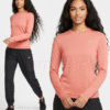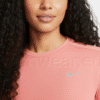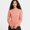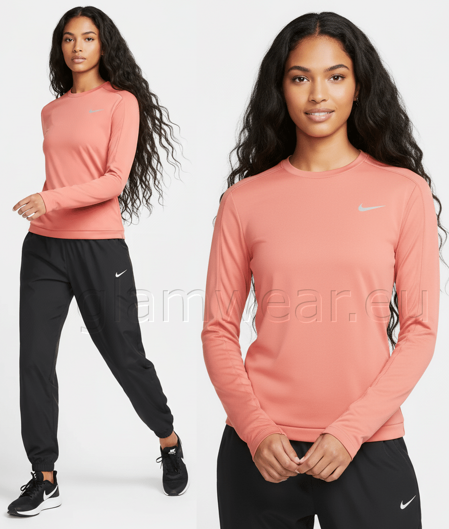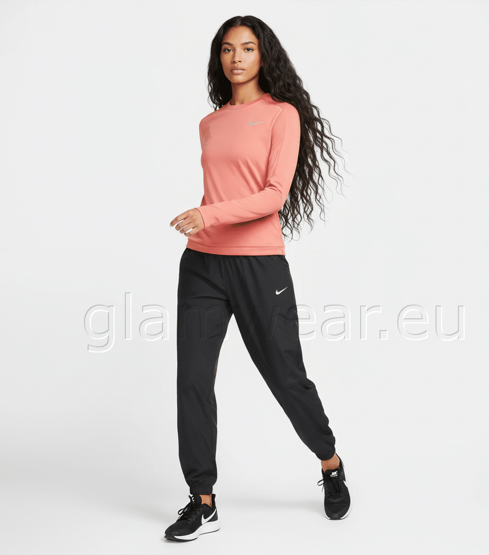 NIKE dry-fit treeningpluus naistele. Nike Dri-FIT tehnoloogia juhib higi nahalt eemale, võimaldades sellel kiiremini aurustuda ning hoides sind kuiva ja mugavana. Pöidlaaugud pakuvad lisakatet. Ümara kaelusega. Materjal: 100% polüester.