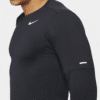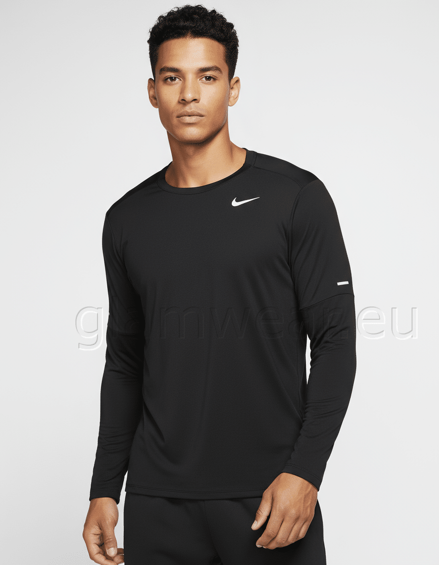 NIKE meeste treeningsärk. Pehme ja sile kangas võimaldab piiramatut liikumist. Nike Dri-FIT tehnoloogia juhib higi nahalt eemale, et see kiiremini aurustuks. Logotrükk, pöidlaaugud, higi imav materjal, materjal: 88% polüester, 12% elastaan.