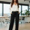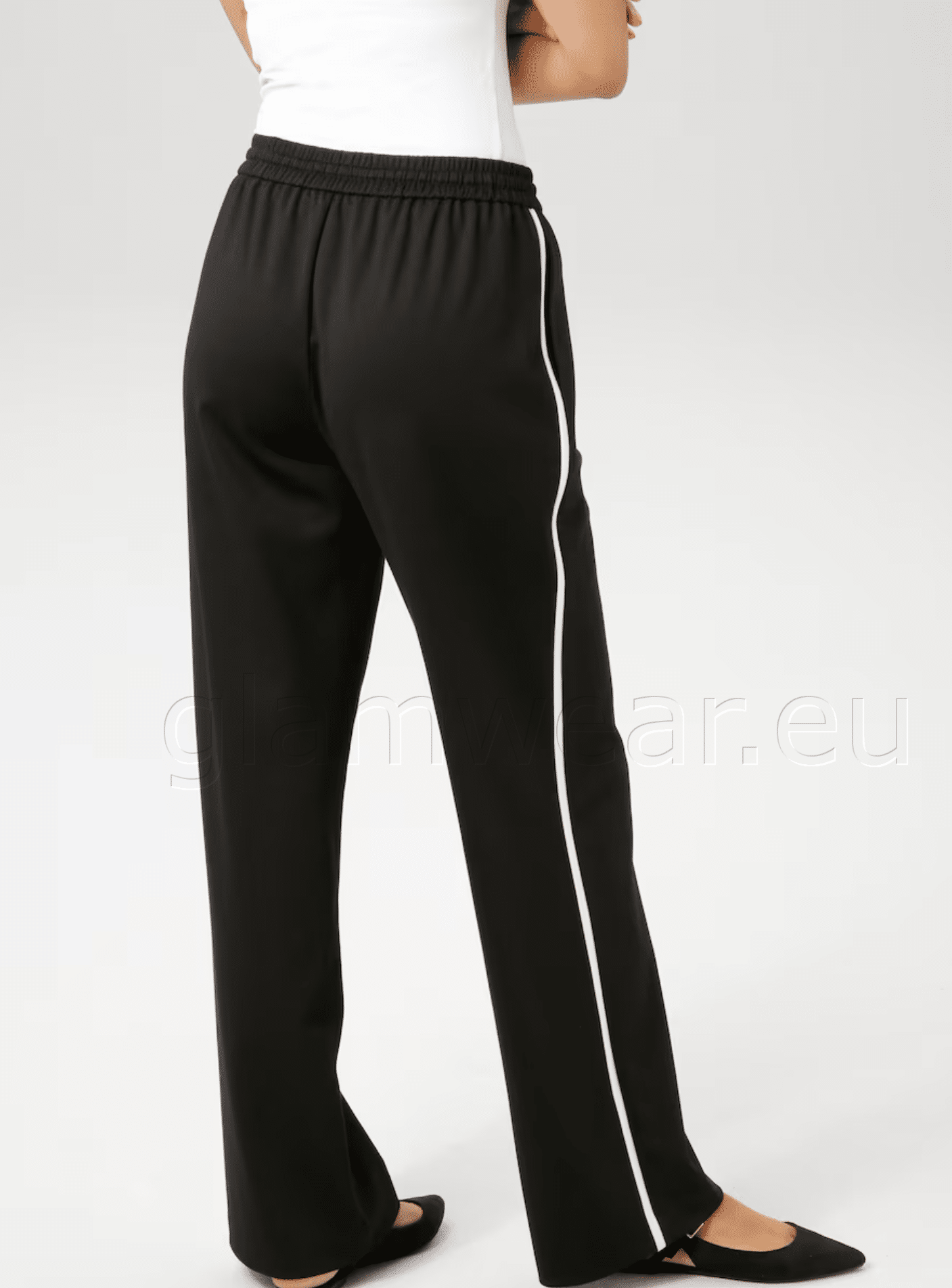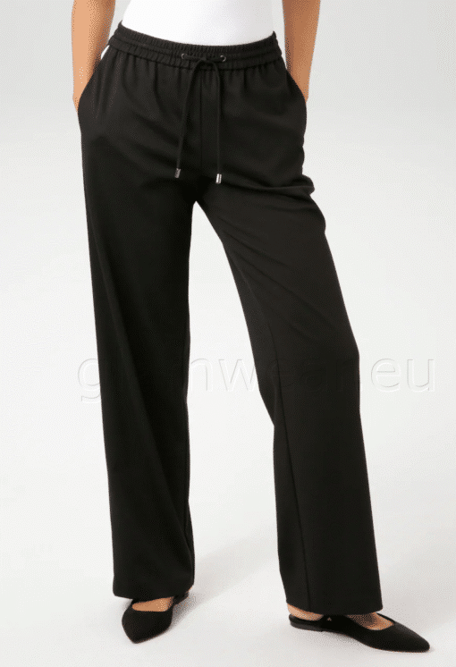 Aniston trendikad ja mugavad casual püksid. Püksid kahe küljetaskuga, kõrge vöökoht, mugava elastse vöökohaga ja paeltega, trendikad triibud küljeõmblustel, sirge lõige, materjal: 82% polüester, 15% viskoos, 3% elastaan. Vooder: 100% polüester.