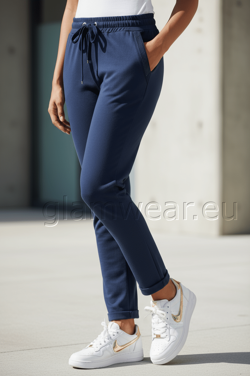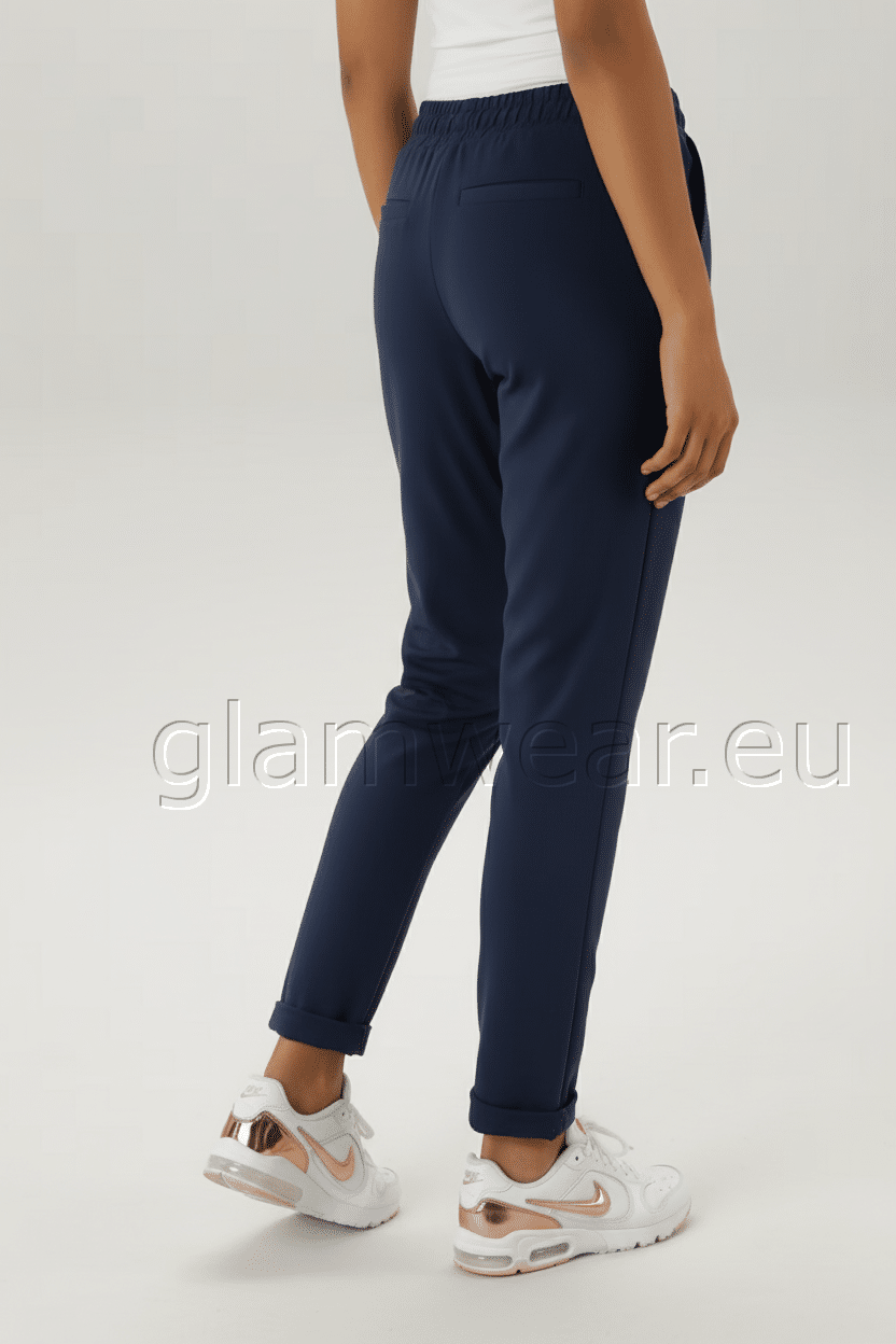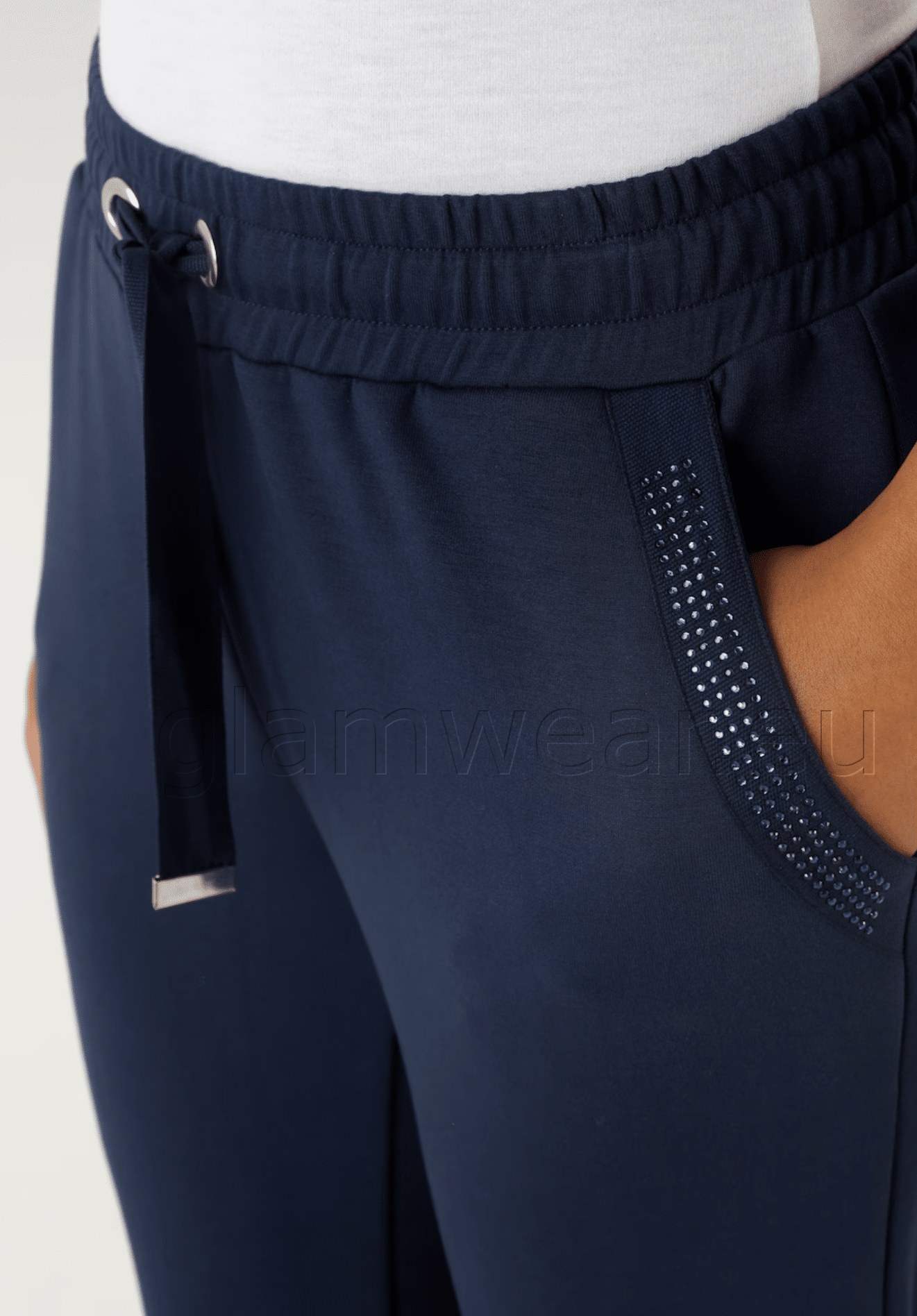 Aniston pehmest kangast casual püksid. Mugava elastse vöökoha ja reguleeritava paelaga, 2 küljetaskut õmmeldud sädelevate kivikestega, materjal: 47% polüester, 47% viskoos, 6% elastaan.