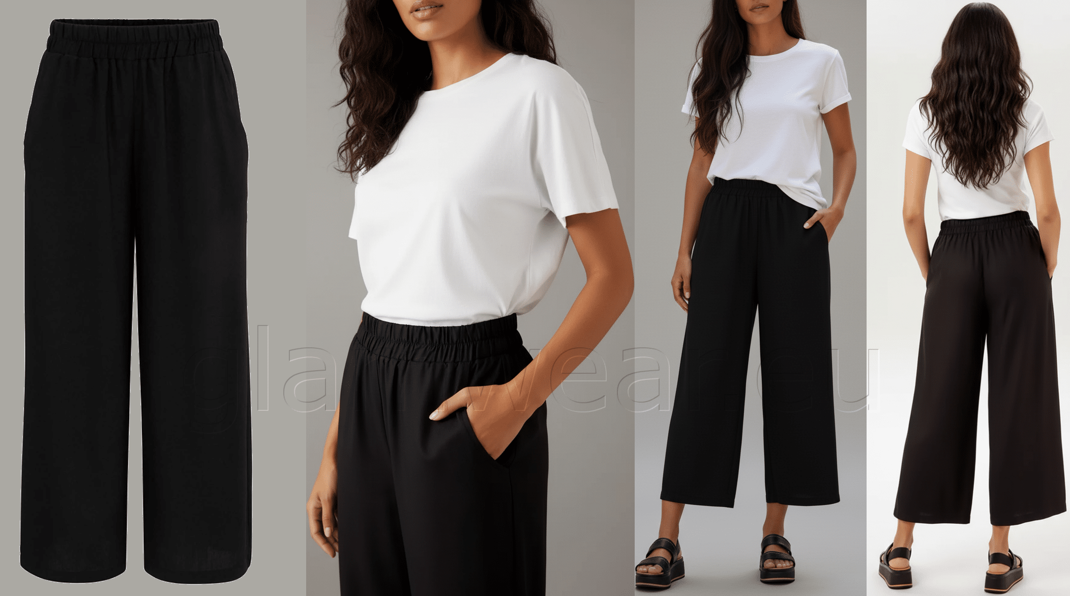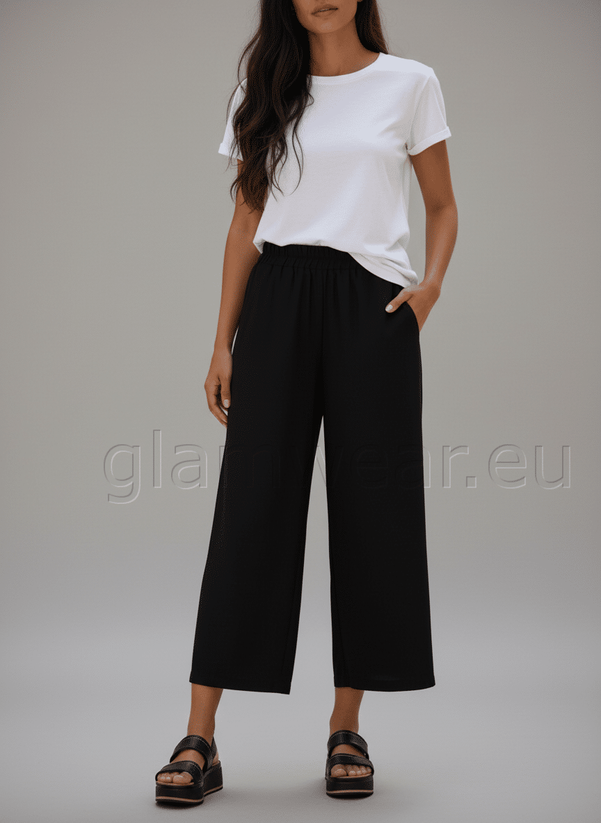 Aniston vabalt langevad viskoospüksid. Püksid pehmest ja voolavast viskoosist, 2 küljetaskut, trendikas 7/8 pikkus, mugav elastne vöökoht, avar lõige laiade sääreosadega. Kerged ja õhulised, sobivad ideaalselt igaks sündmuseks. Lihtne disain ja stiilne pikkus lisavad elegantsi, samas kui elastne vöökoht pakub mugavust. Sisesääre pikkus 68cm. Materjal: 100% viskoos.