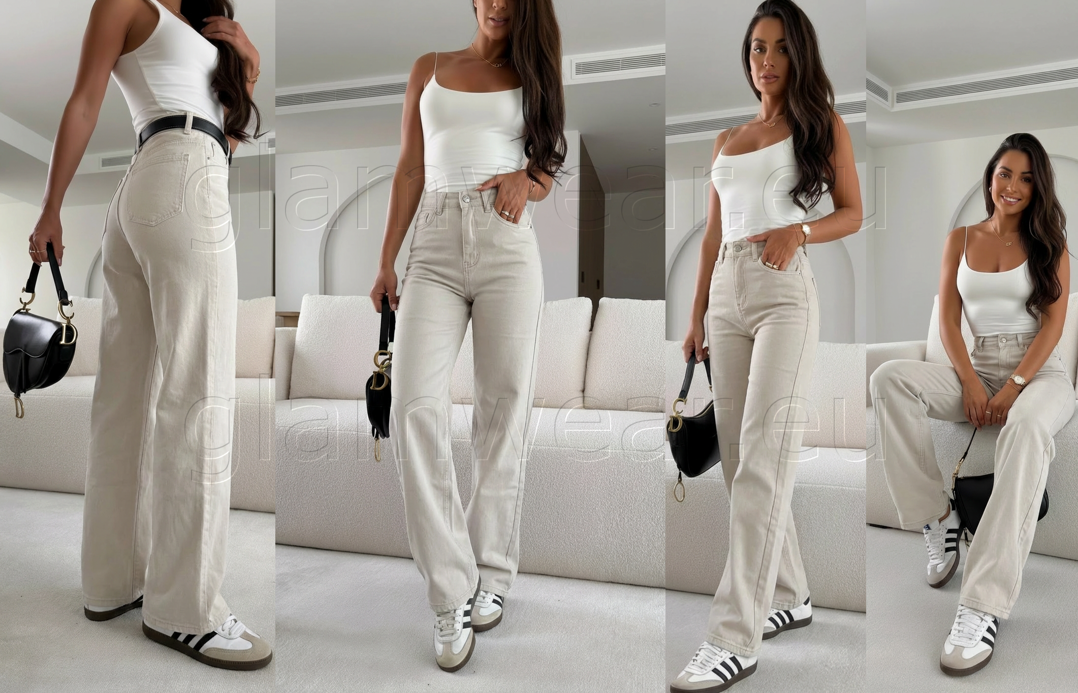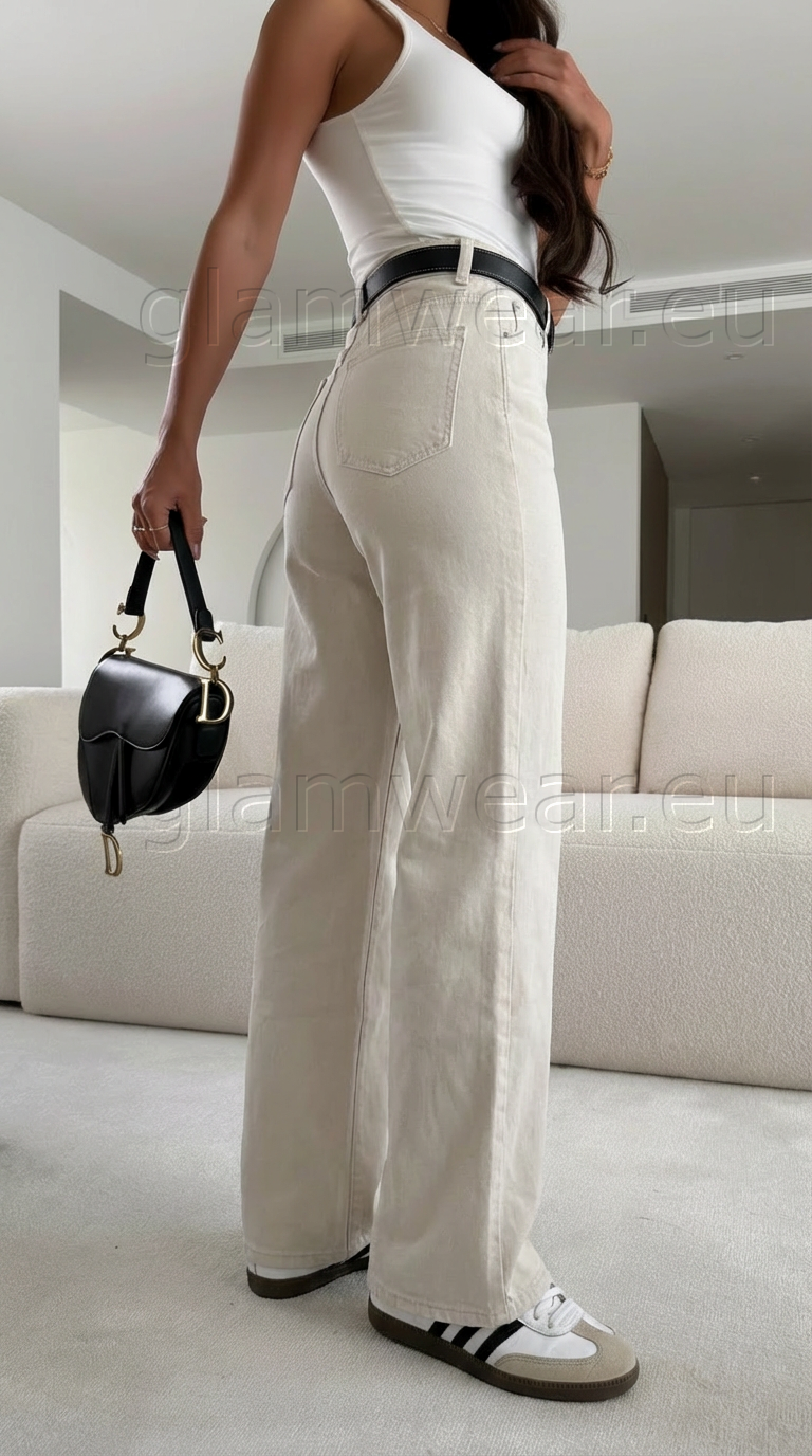 GOODIES laiad ja pikad wide leg beežid teksapüksid. Ajatu ja mugav valik. Mõnus stretš kangas! Kõrge vöökoht rõhutab figuuri, puusadest kergelt liibuv lõige ja lai sääreosa annavad stiilse ning vaba ilme. Praktilised taskud mõlemal küljel teevad need teksad ideaalseks igapäevaseks kandmiseks. Materjali koostis: 92% puuvill, 5% polüester, 3% elastaan.
