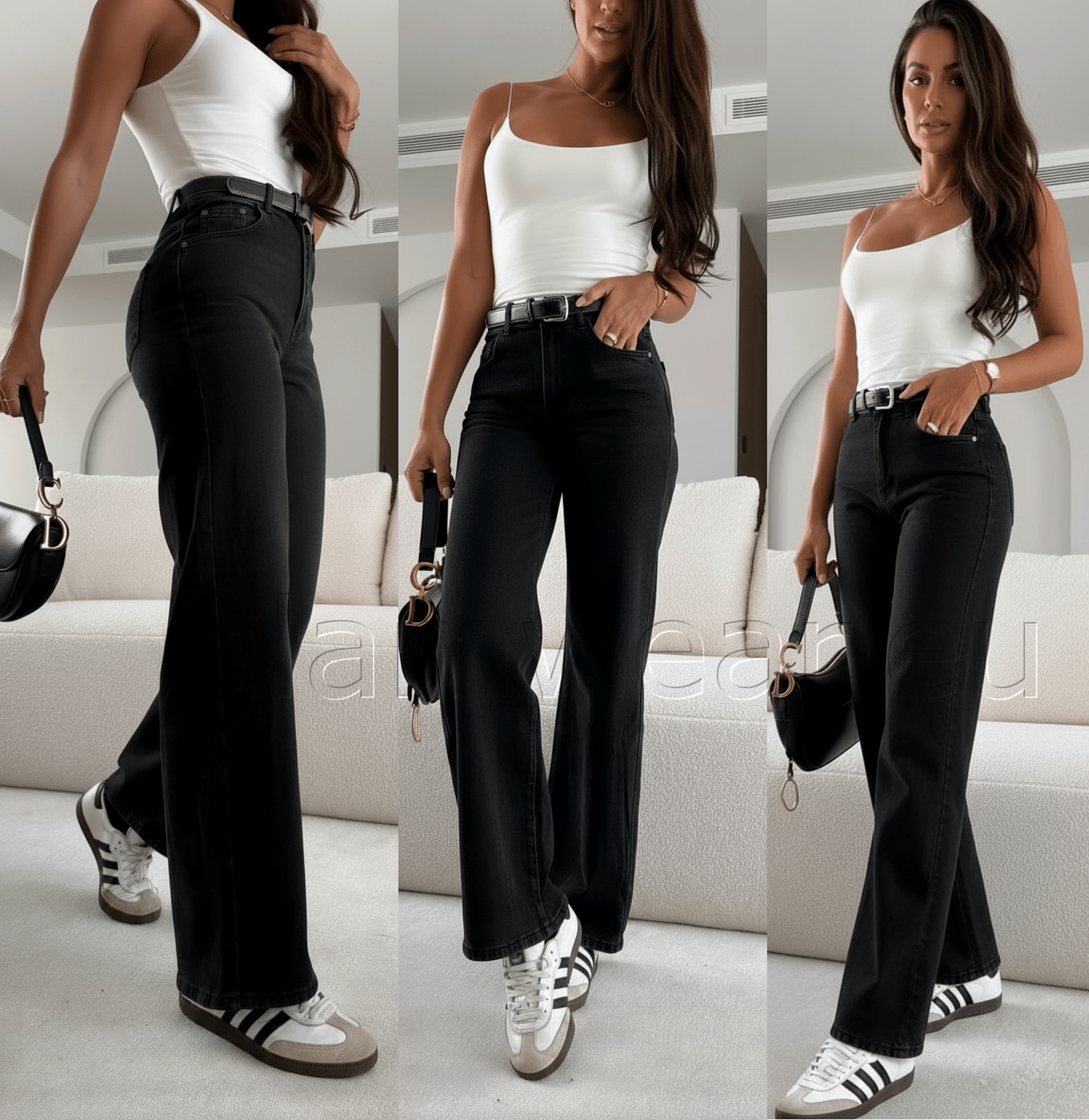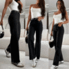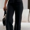 GOODIES laiad ja pikad wide leg mustad teksapüksid. Pildil olev rihm ei kuulu kompleti. GOODIES mustad laiad klassikalised teksad on ajatu ja mugav valik. Mõnus stretš kangas! Kõrge vöökoht rõhutab figuuri, puusadest kergelt liibuv lõige ja lai sääreosa annavad stiilse ning vaba ilme. Praktilised taskud mõlemal küljel teevad need teksad ideaalseks igapäevaseks kandmiseks. Materjali koostis: 92% puuvill, 5% polüester, 3% elastaan.