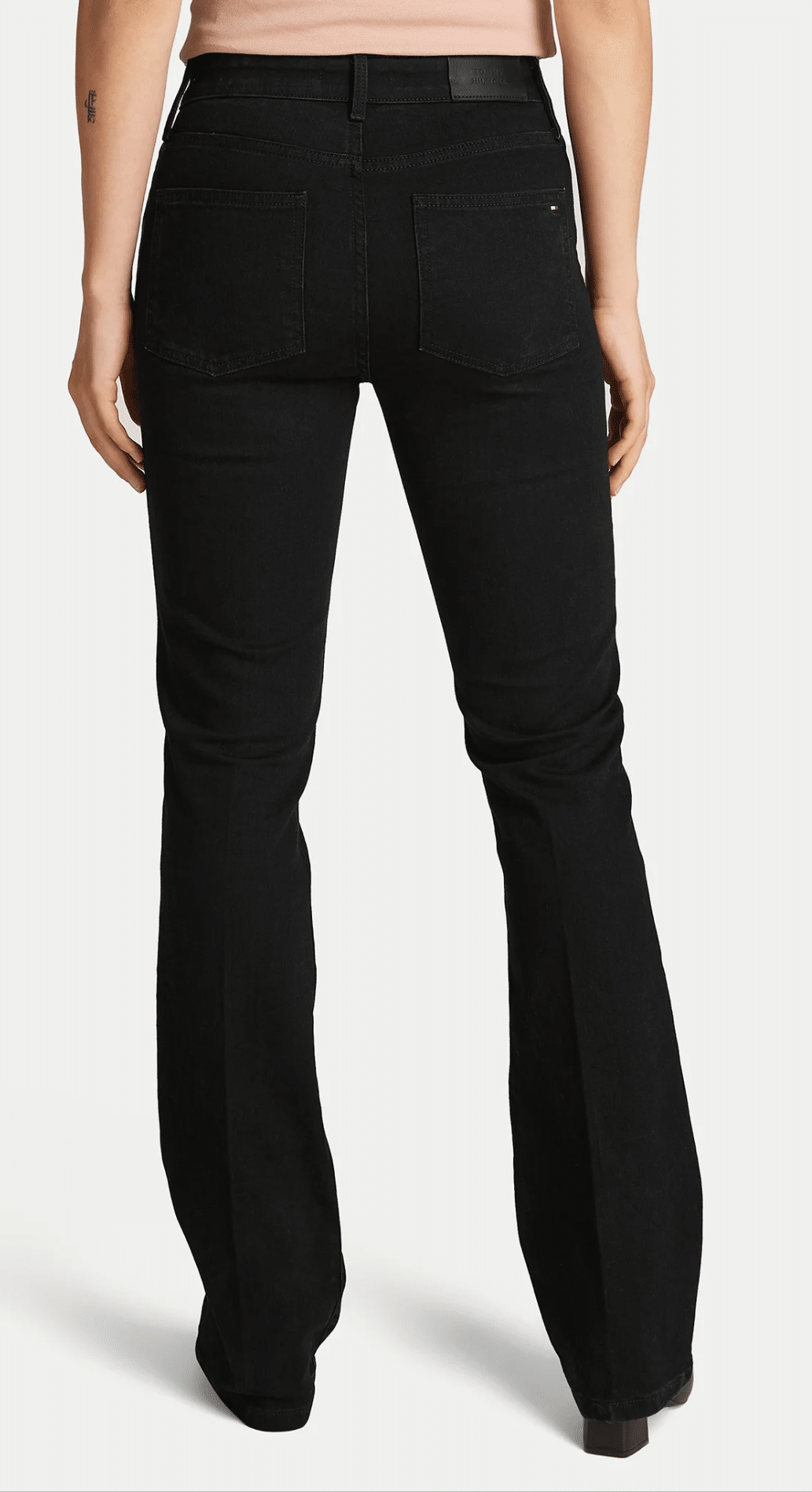 Tommy Hilfiger musta värvi teksapüksid naistele. Pikkus 32 ehk sisesäär 80cm. Laiendatud lõikega bootcut-teksad vabaaja välimuse loomiseks. Tavaline vöökoht tagab mugava istuvuse puusadel ning pikem lõige sobib kõrgete kontsadega kandmiseks. Veniv denimmaterjal pakub suurepärast mugavust ja liikumisvabadust. Klassikaline disain ja praktilised taskud muudavad need hõlpsasti kombineeritavaks erinevate outfit’idega. Materjal: 98% puuvill, 2% elastaan.
