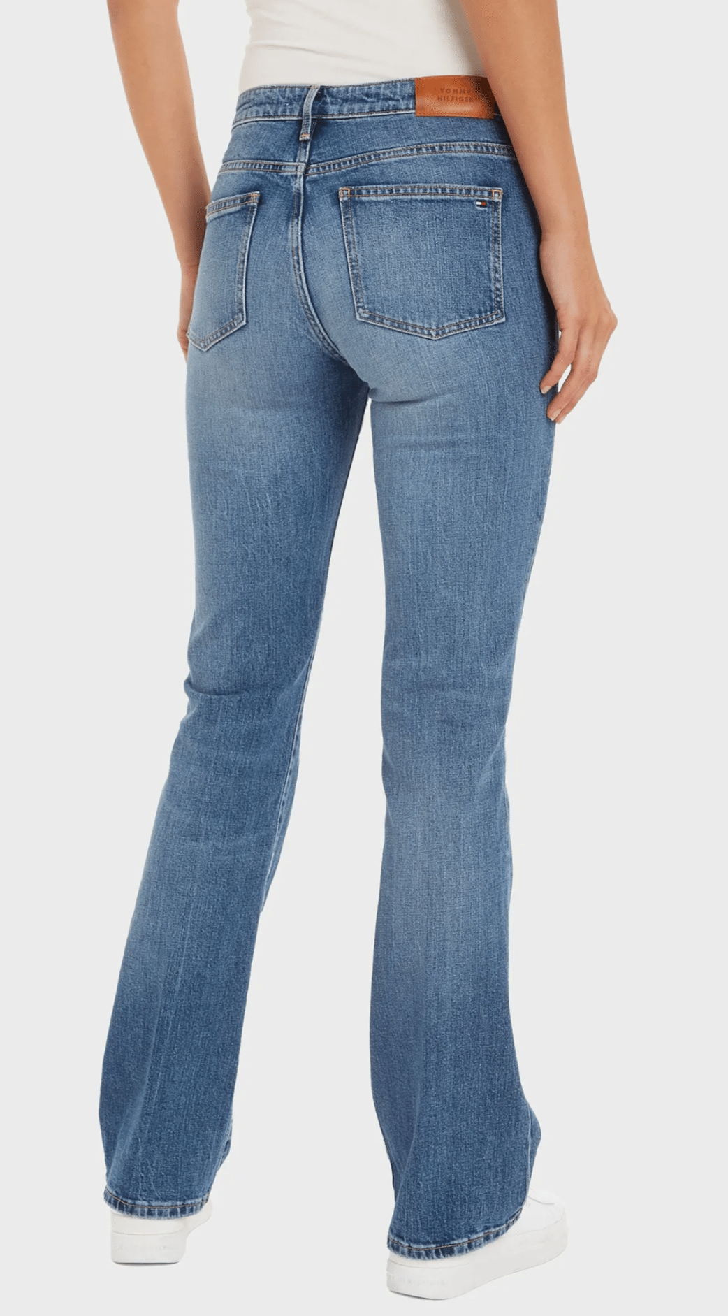 Tommy Hilfiger teksapüksid naistele. Pikkus 32 ehk sisesäär ca 80cm. TOMMY HILFIGERi figuuri vormivad teksad, bootcut-lõikeline lõige ja tavaline vöökoht ideaalse istuvuse tagamiseks, klassikaline viie taskuga mudel, põlvest allääreni kergelt laienev, materjal: 99% puuvill, 1% elastaan.