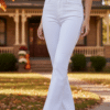 Super mugavad ja kvaliteetsed kõrge pihaga valged alt laienevad teksapüksid. Väga mugavad ja naiselikud. Ideaalsed suvepüksid! Kõrge pihaosa, stretš materjal, alt laienev lõige. Kvaliteetne materjal, ei paista läbi! Materjal: 98% puuvill, 2% elastaan.