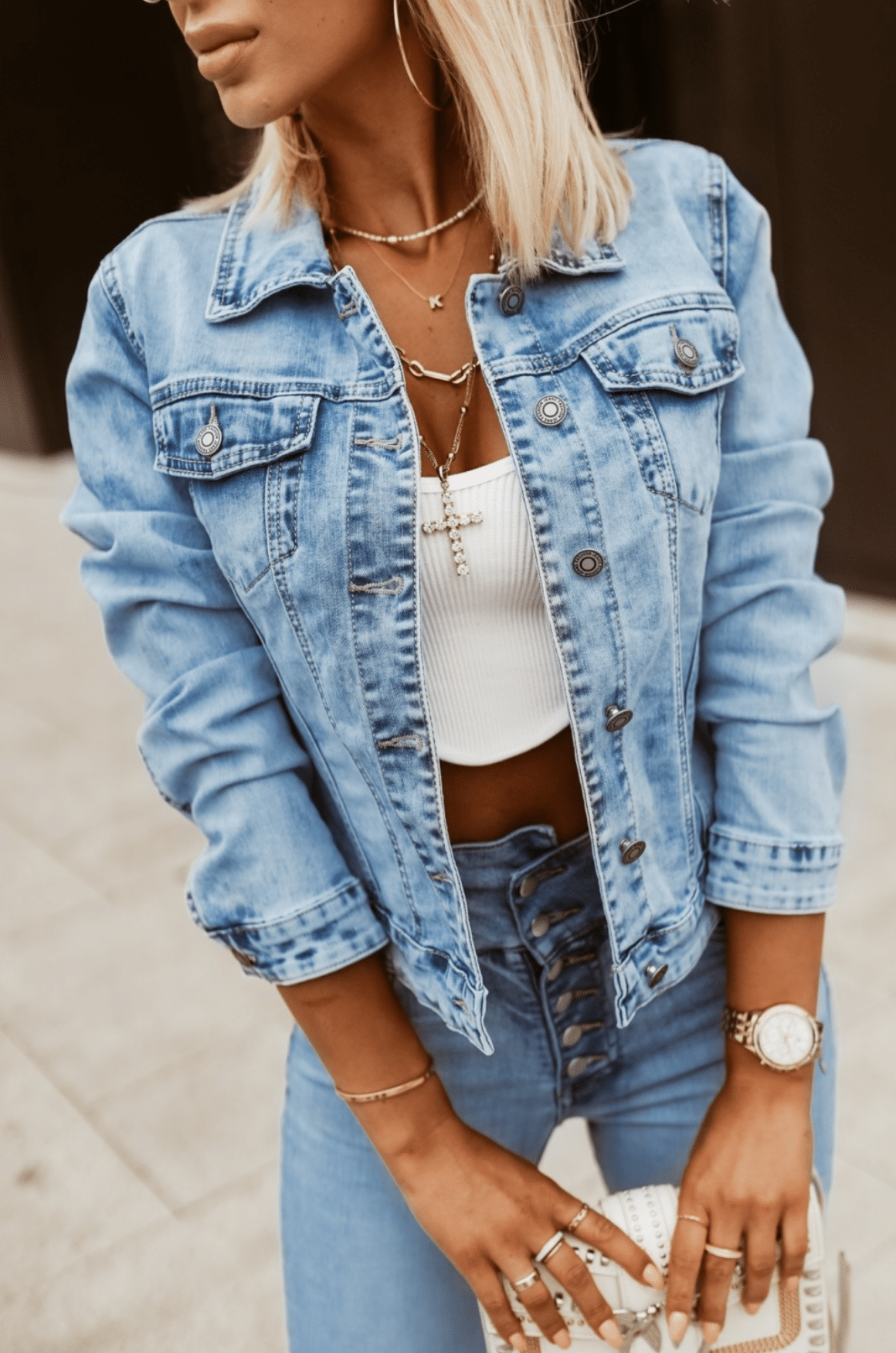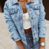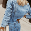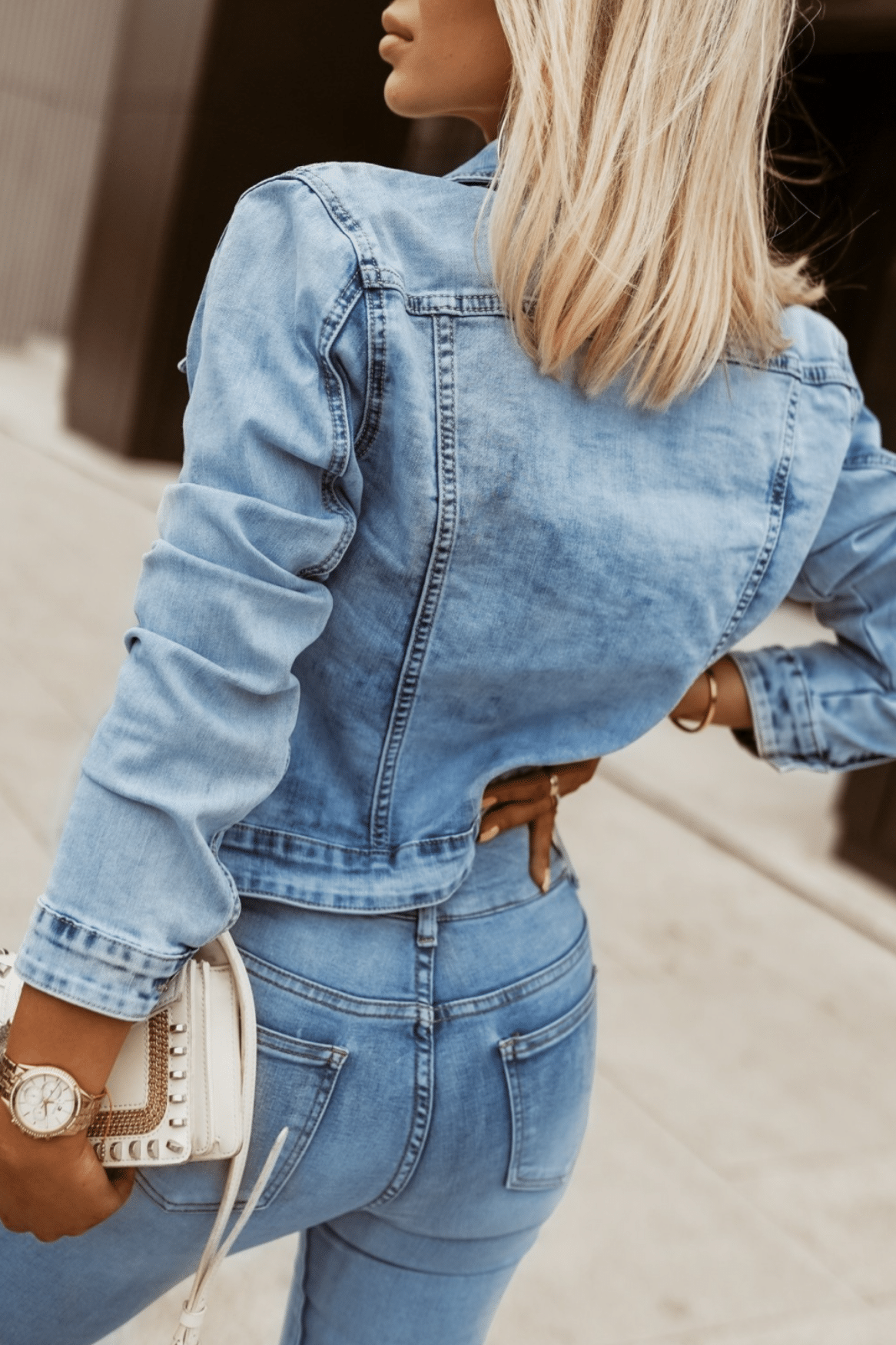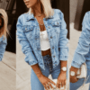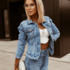 GOODIES helesinine stretš teksatagi. Klassikalise lõikega helesinine teksajakk. Sellel on pikad varrukad. Valmistatud hea kvaliteediga materjalist (stretš). Ideaalne igat tüüpi stiilide jaoks. Kinnitatakse eest nööpidega, dekoratiivsed rinnataskud. Pildil oleva modelli mõõdud: rind 90cm, pikkus 165cm, kannab S suurust.